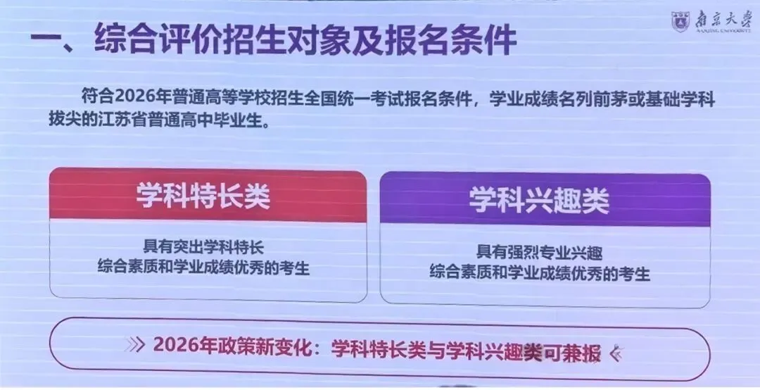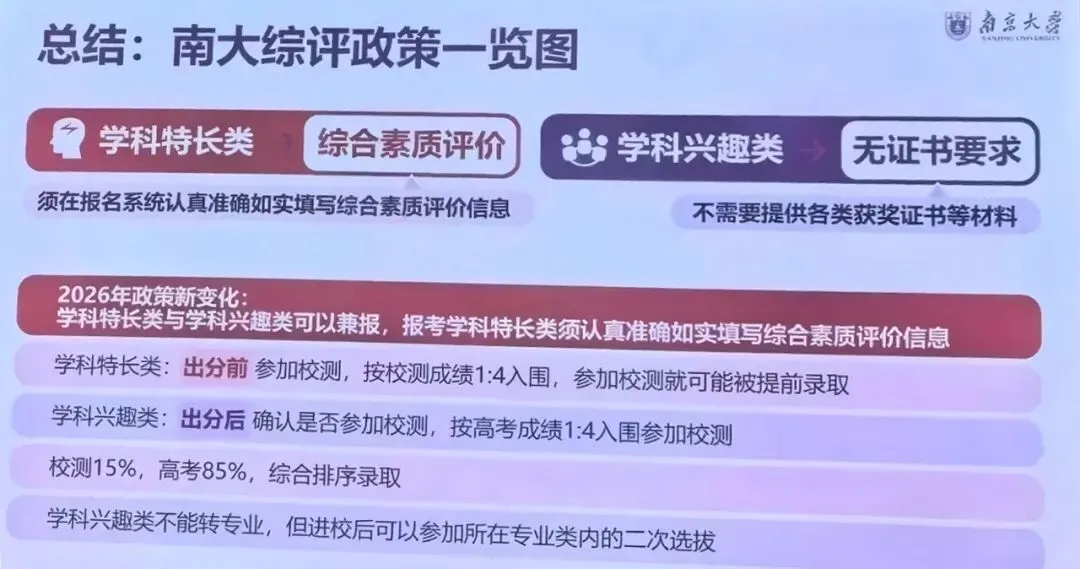 2026年南京大学综评最大的变化其实是报考学科特长类的考生需要认真填写综合素质评价信息。
