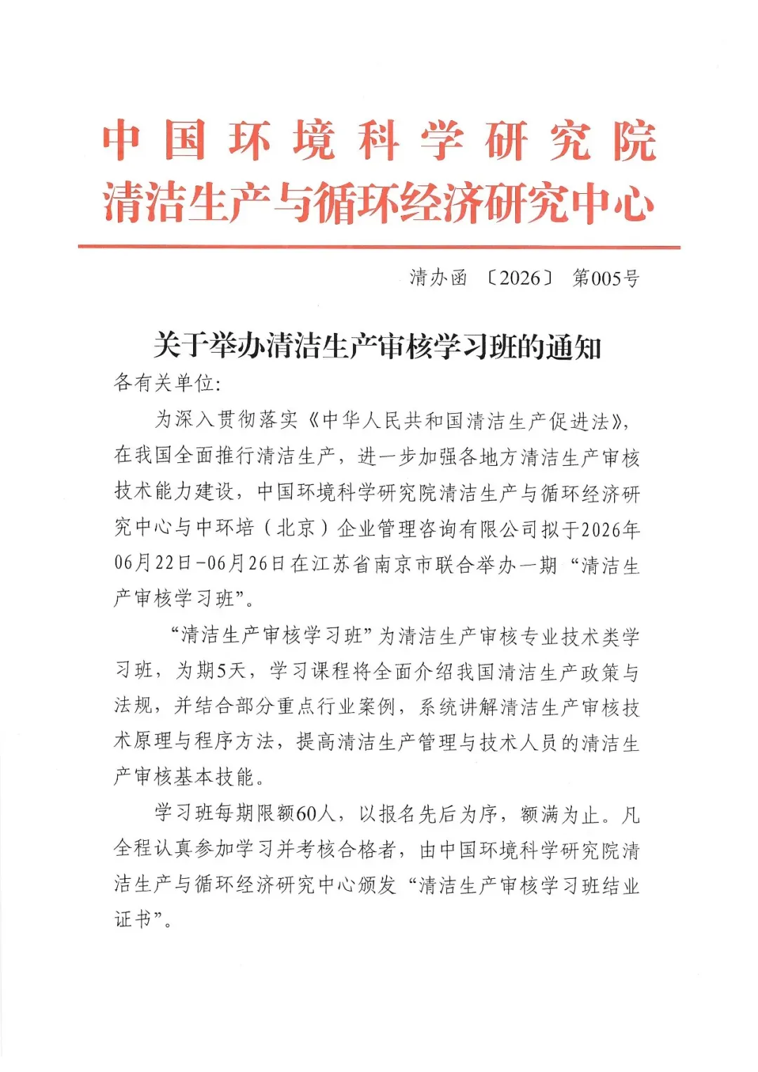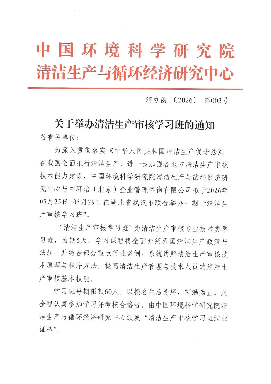 为期5天,课程将全面介绍我国清洁生产政策与法规,并结合部分重点行业案例,系统讲解清洁生产审核技术原理与程序方法,提高清洁生产管理与技术人员的清洁生产审核基本技能。