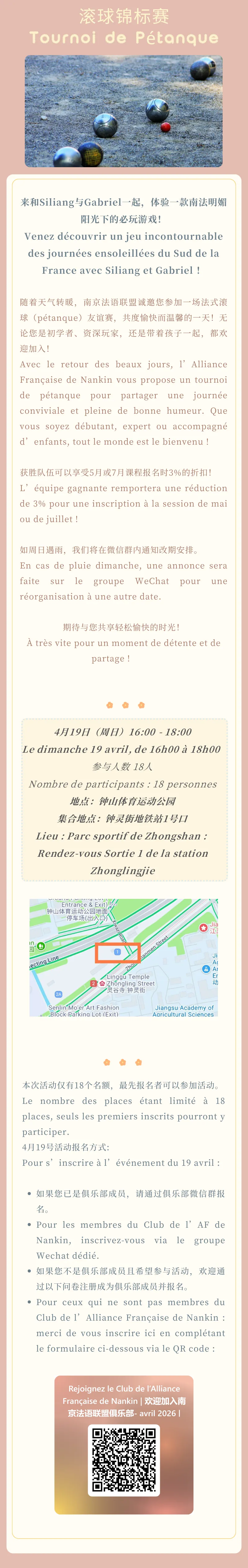 【4月19日·南京法盟俱乐部】滚球锦标赛 Tournoi de Pétanque