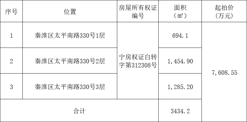 1.南京市秦淮区太平南路330号1至3层资产
