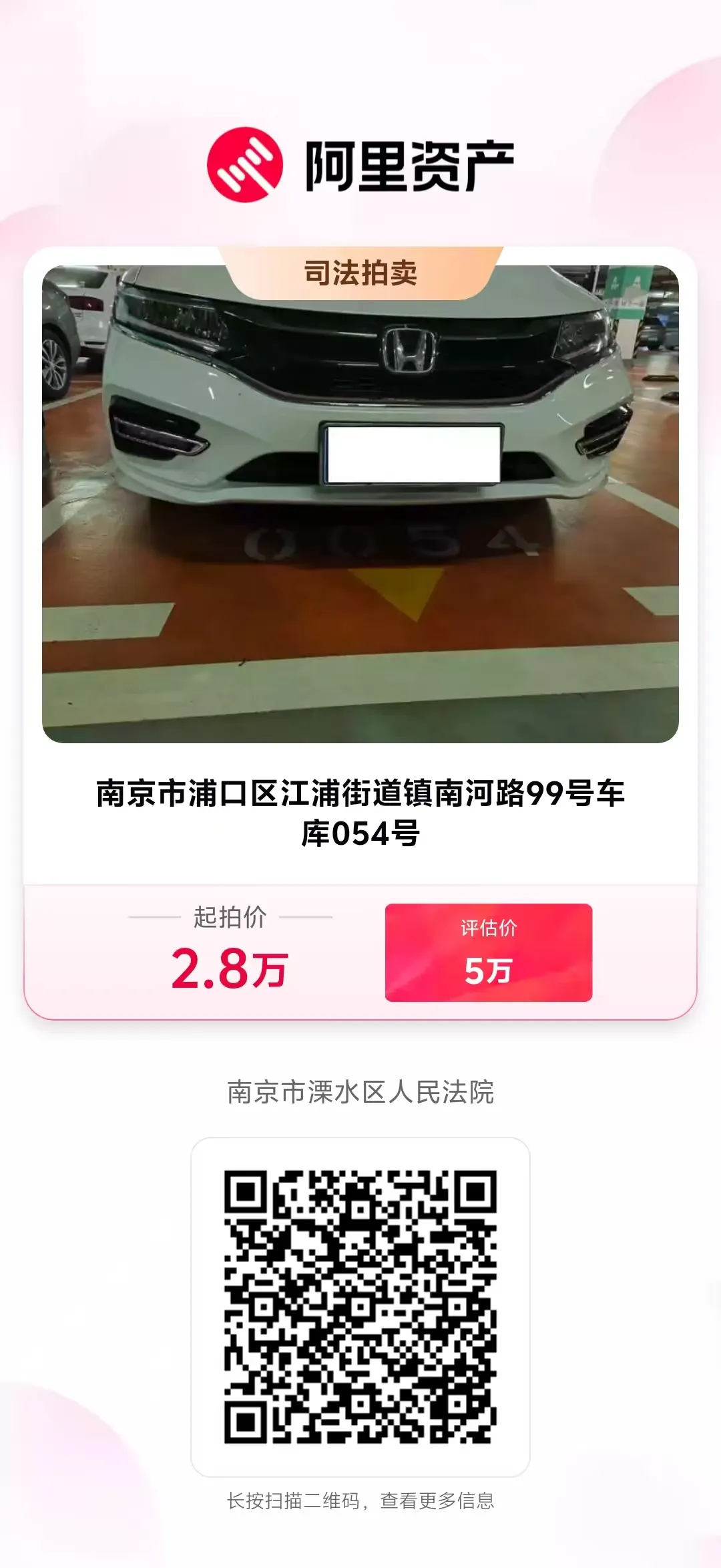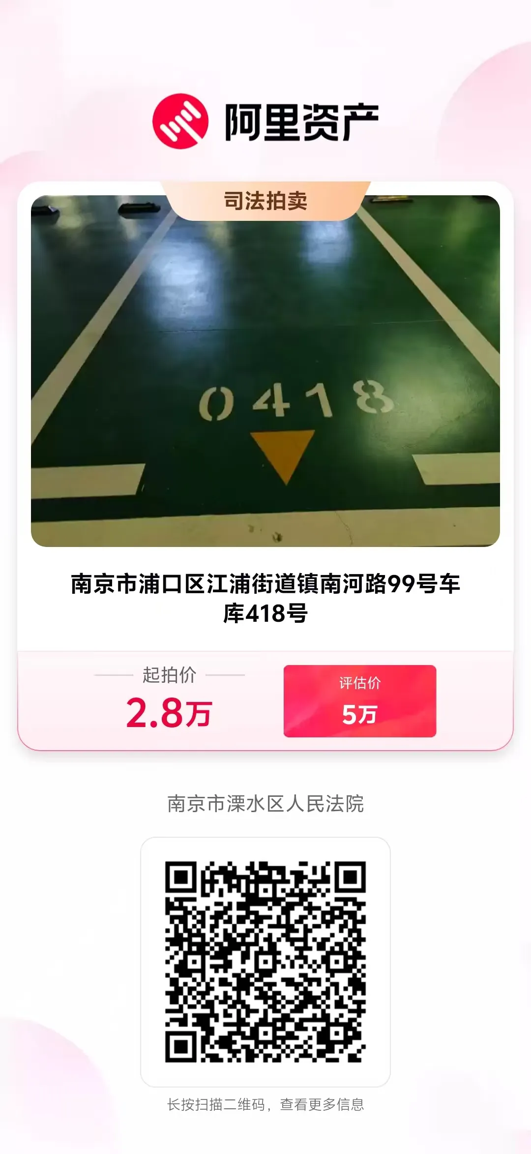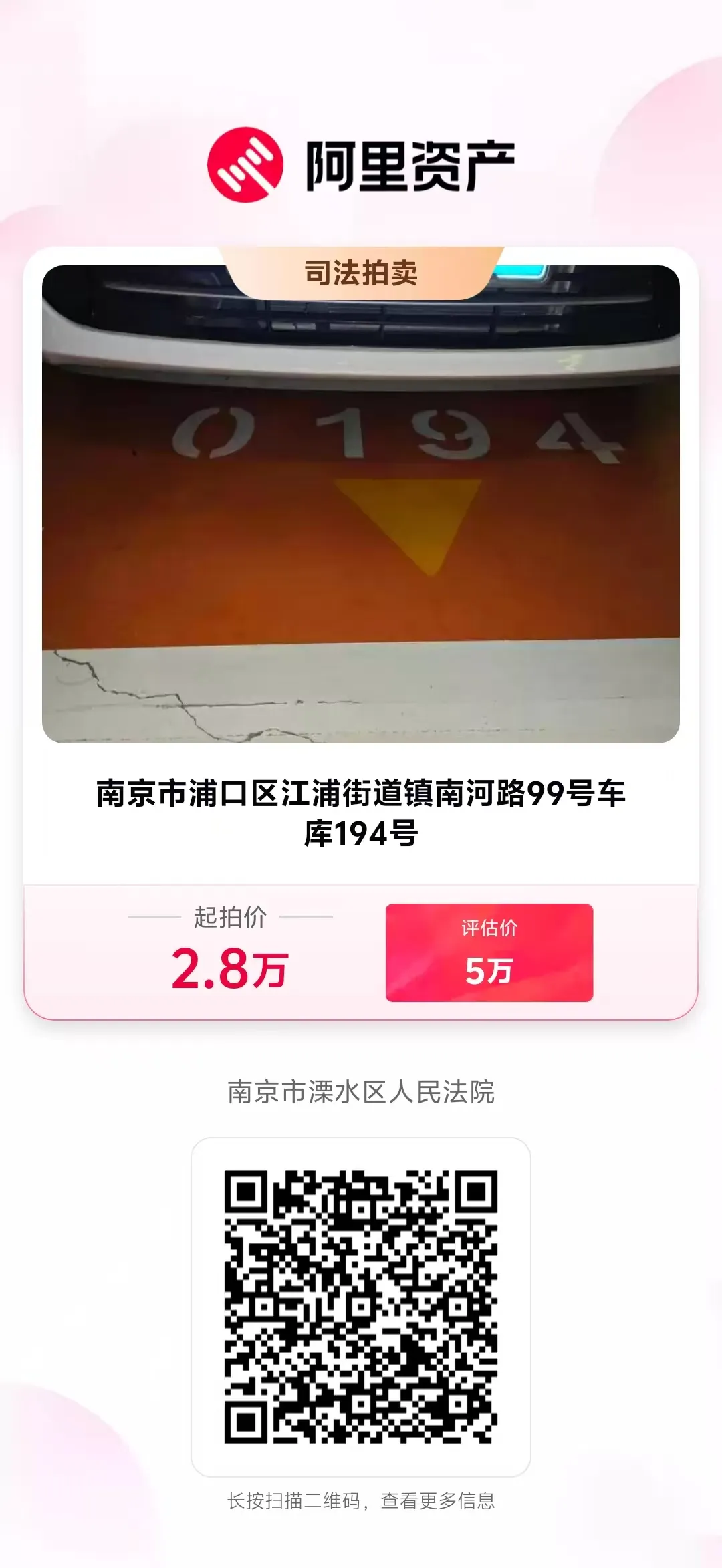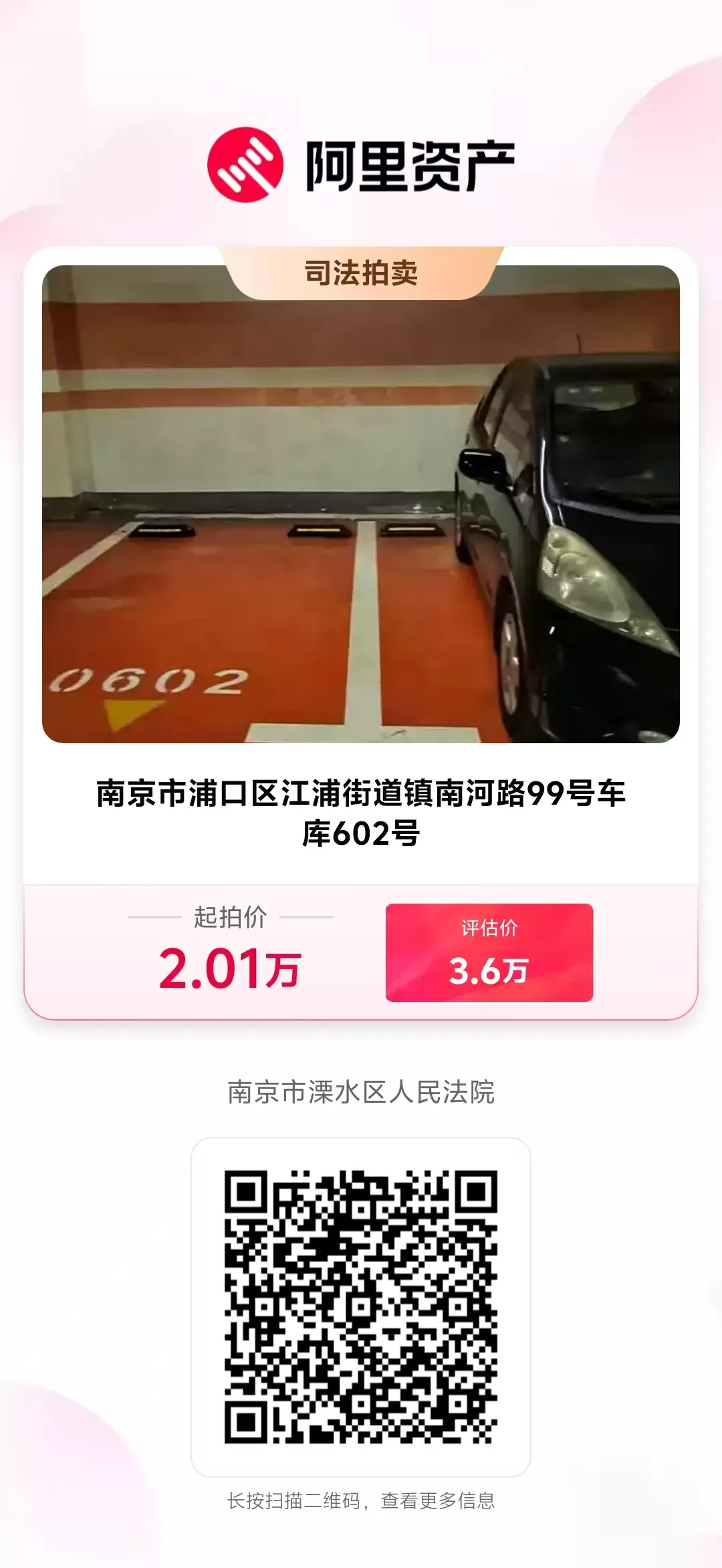 司法拍卖公告|中信金融资产江苏分公司对南京市浦口区江浦街道镇南河路99号(正荣润江城)车库054号等396个车位法拍资产拍卖公告