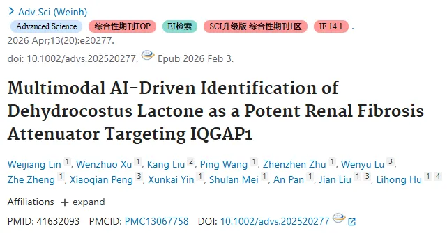 《基于多模态人工智能驱动的脱氢高良姜内酯作为靶向IQGAP1的强效肾纤维化缓解剂的鉴定》