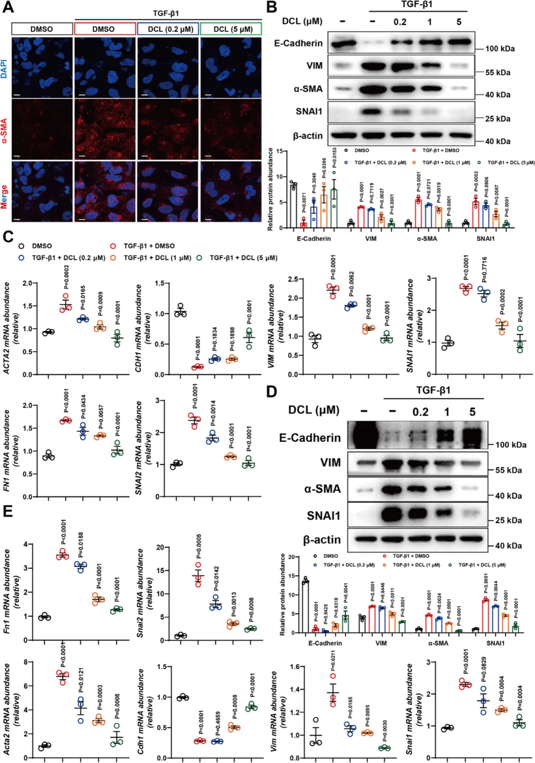 图2.DCL缓解TGF-β1诱导的纤维化肾小管上皮细胞
