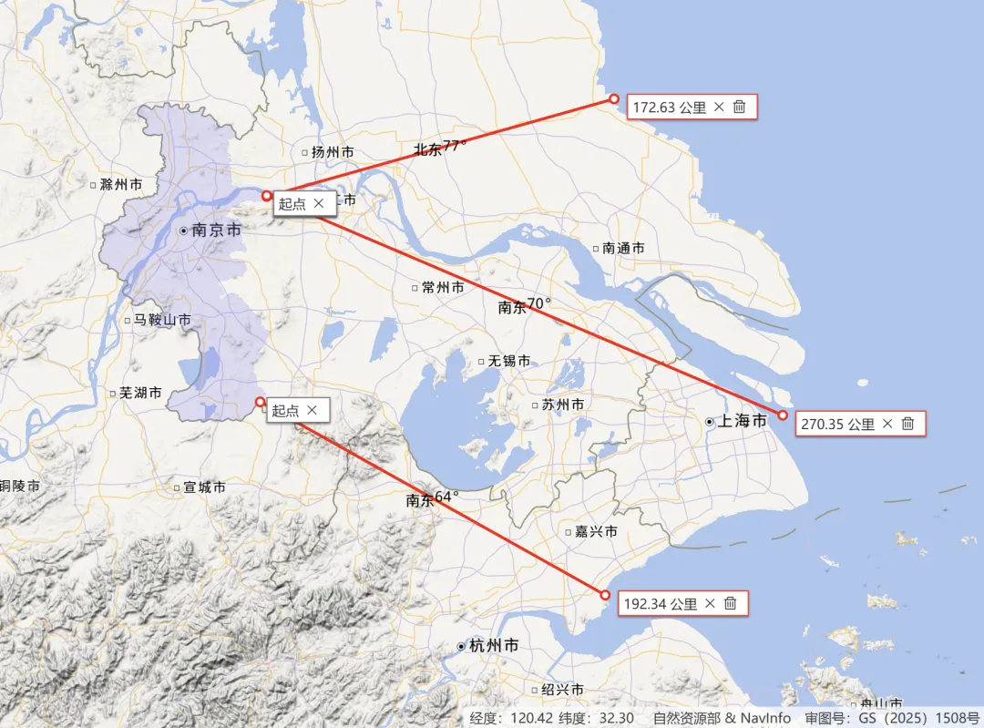 ,这是南京市范围内离海洋最近的距离。从市域南部连到杭州湾则有190多公里。