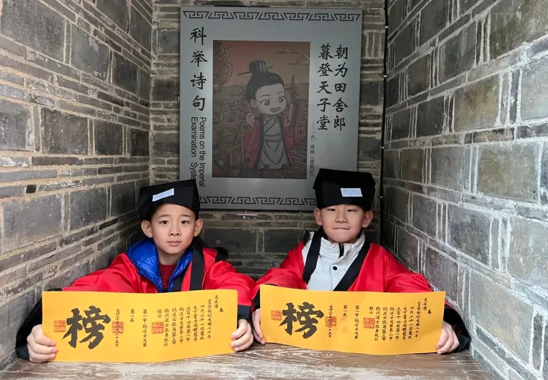 1.参观科举博物馆,入号舍科考,跨龙门,得金榜;思考分享古人如何辛苦地学习,中榜时要具备何种能力和特长?