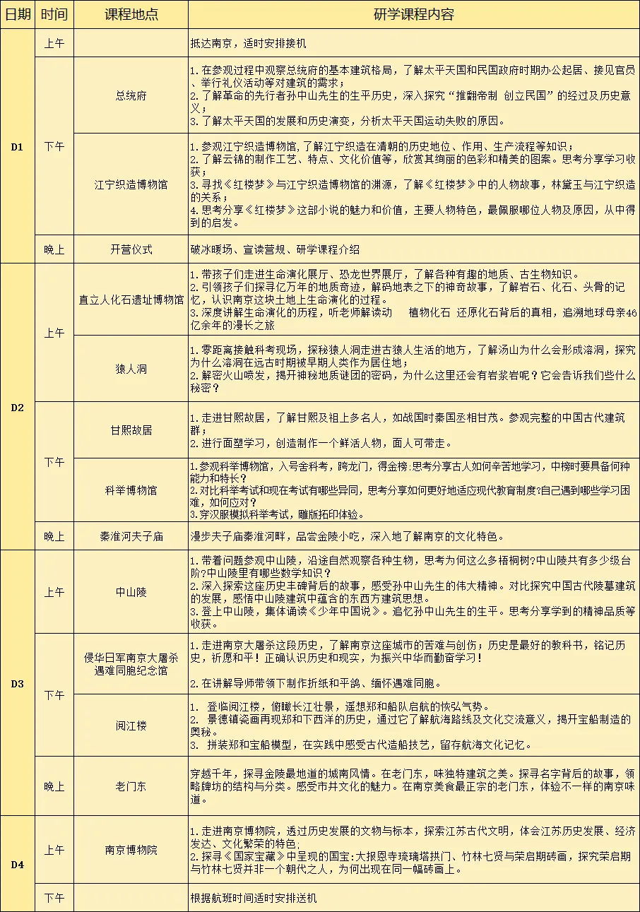 1. 登临阅江楼,俯瞰长江壮景,遥想郑和船队启航的恢弘气势;2. 景德镇瓷画再现郑和下西洋的历史,通过它了解航海路线及文化交流意义,揭开宝船制造的奥秘;3. 拼装郑和宝船模型,在实践中感受古代造船技艺,留存航海文化记忆。 … … … … … … … … … … … … … … … 侵华日军南京大屠杀遇难同胞纪念馆是中国人民承段全民族灾难的实证性、遗址型专史纪念馆,也是中国唯一一座有关侵华日军南京大屠杀遇难同胞的专史陈列馆及国家公祭日主办地。