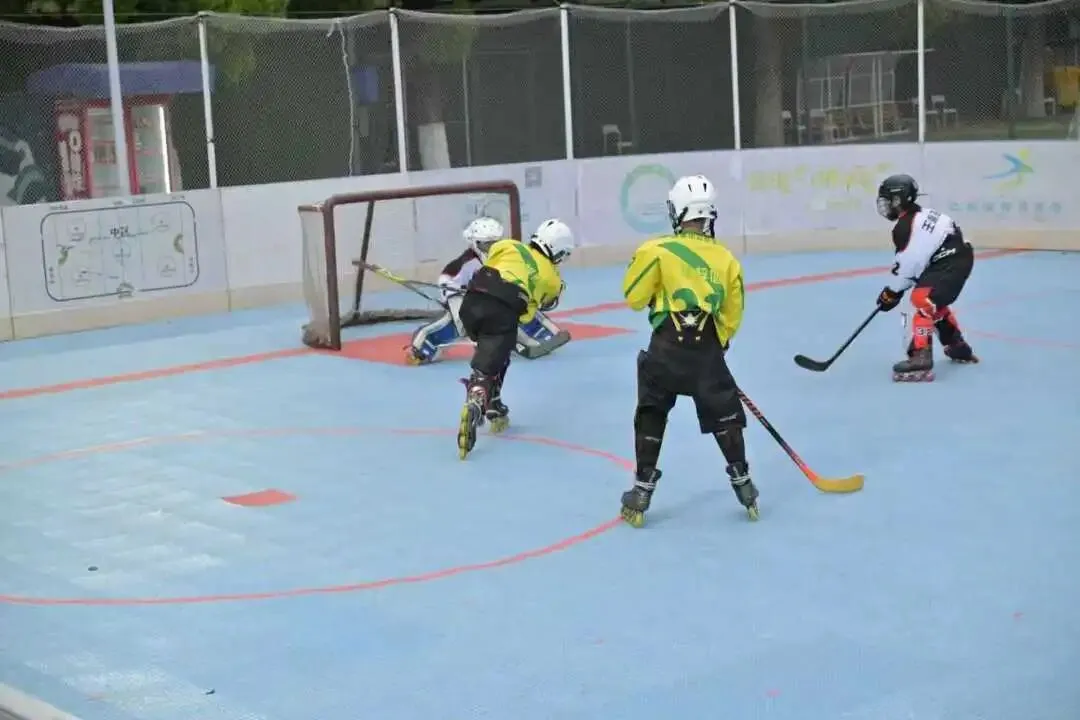 当轮滑与球杆碰撞,速度与对抗在此刻交融。场上选手脚蹬轮滑,身姿矫健,灵活穿梭于赛场之间,急停、变向、传球、射门一气呵成,每一次精准配合都尽显默契,每一回奋力防守都诠释拼搏。