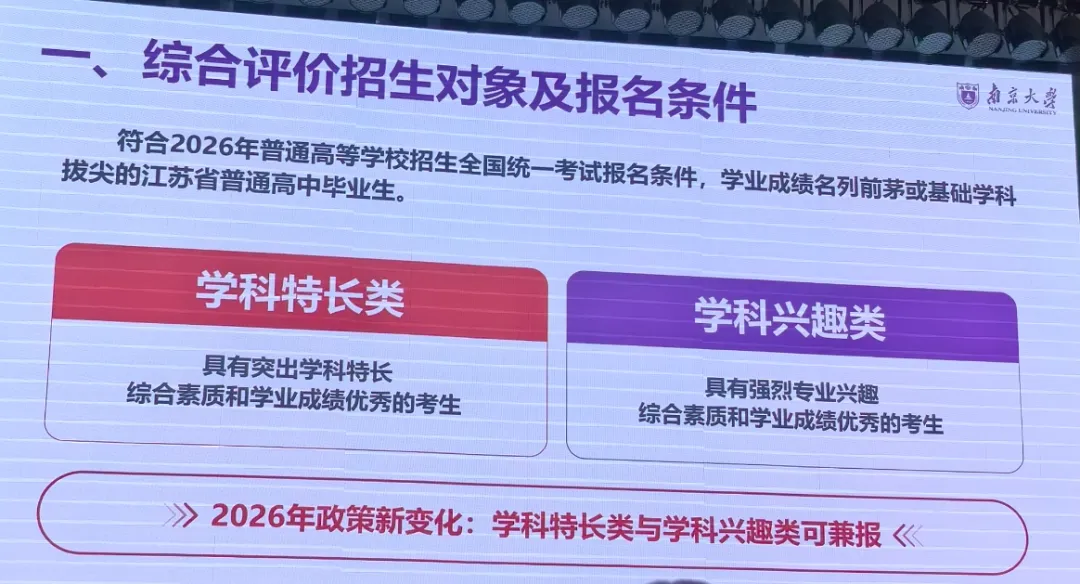 学科特长类招生人群—具有突出学科特长综合素质和学业成绩优秀的考生;相比以往招生条件竞赛两字已剔除。