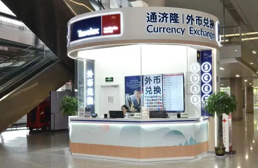 通济隆外币兑换门店焕新升级,以崭新面貌为旅客提供专业外币兑换服务。门店位于禄口国际机场国际到达外大厅2号门旁,营业时间07:00-23:00,支持40+种货币兑换。