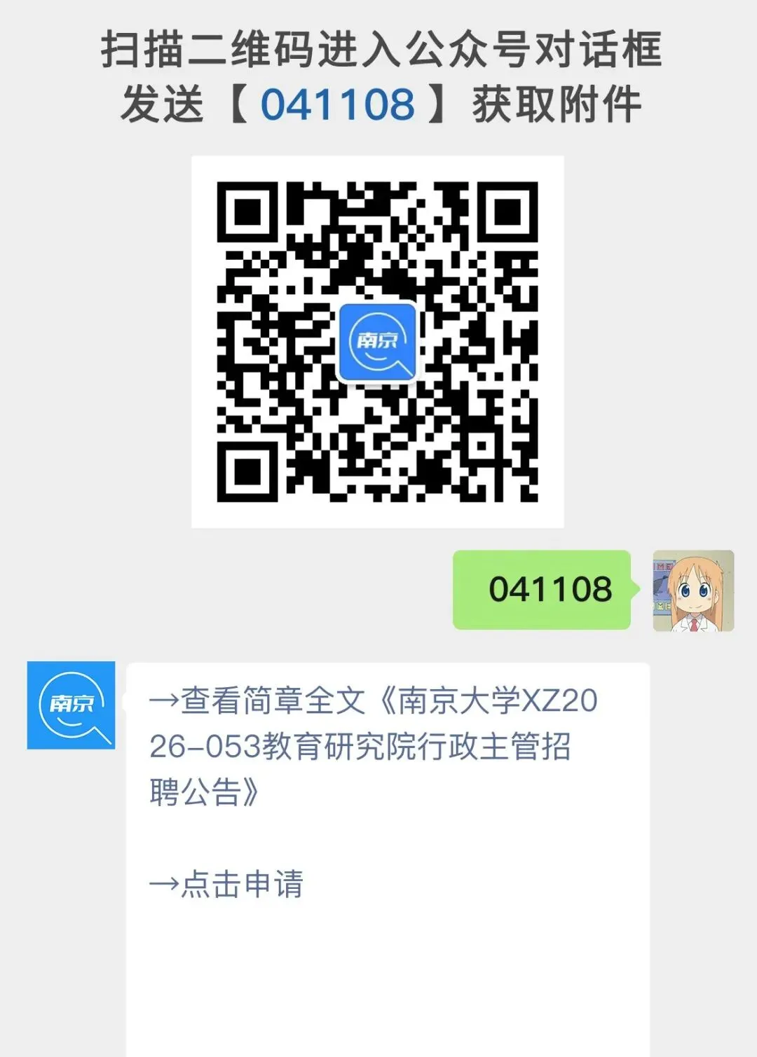 请点击左侧【点击申请】或登录南京大学人才招聘网(http://zp.nju.edu.cn/)注册报名。截止日期为:2026年04月16日