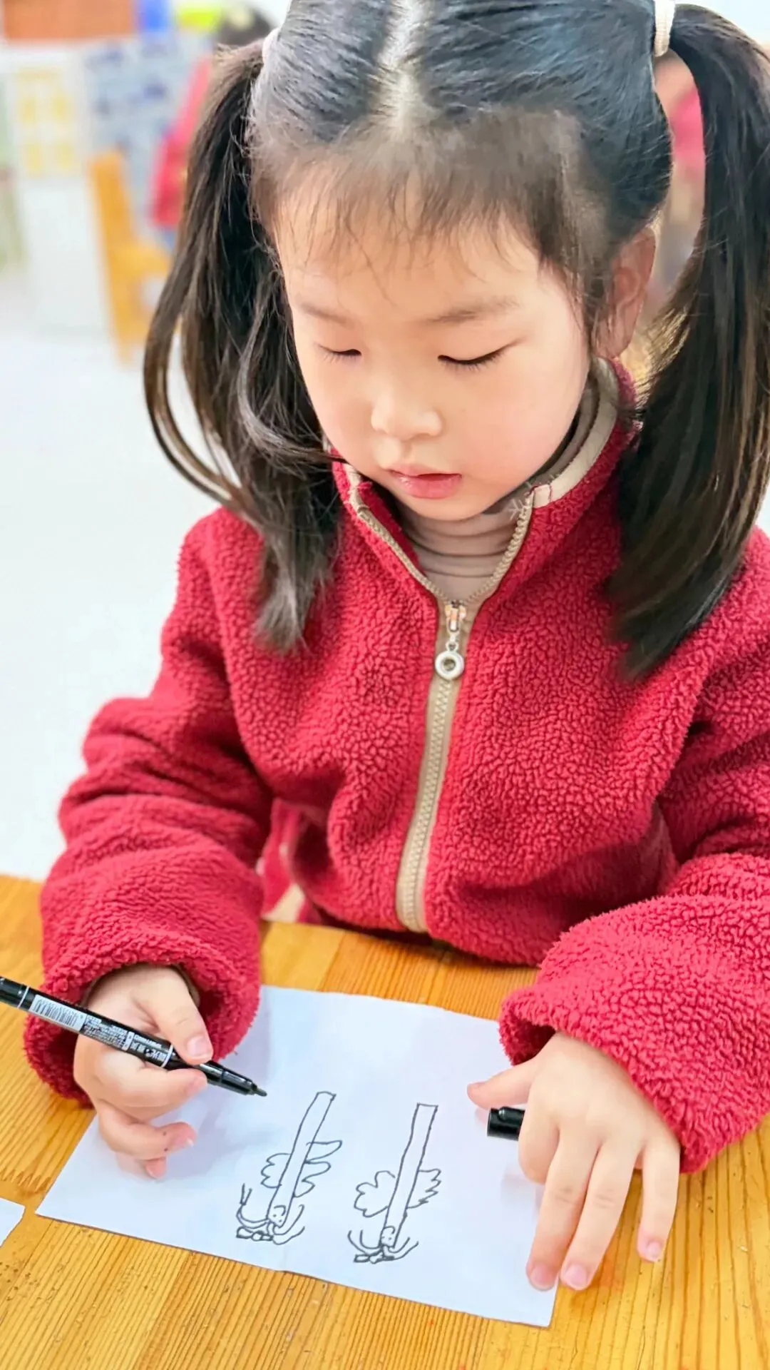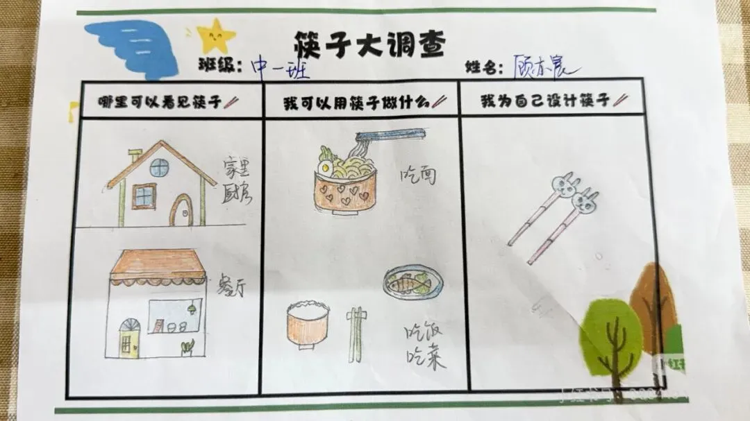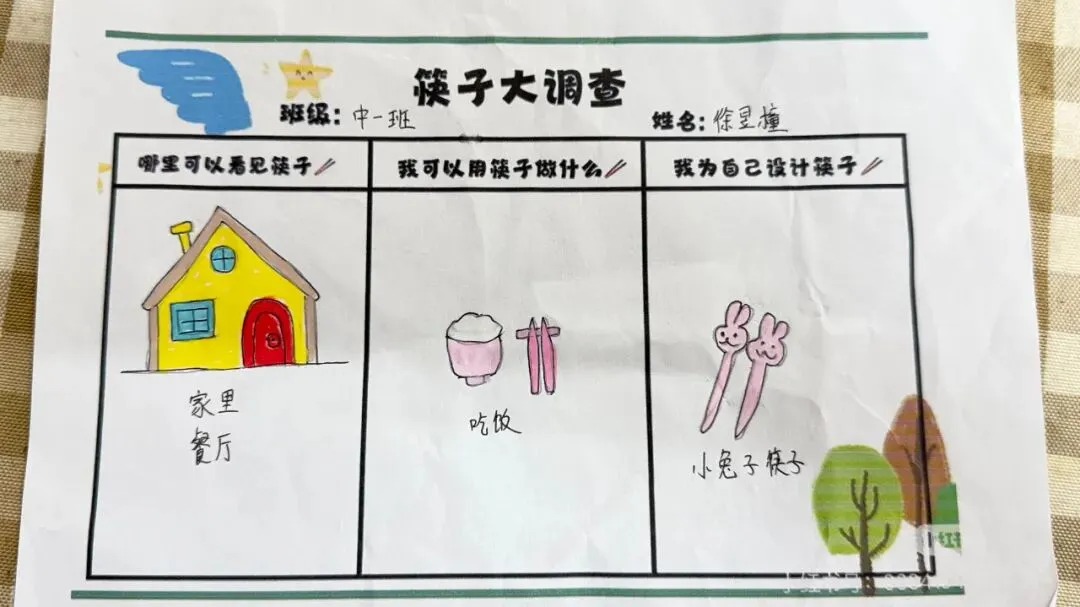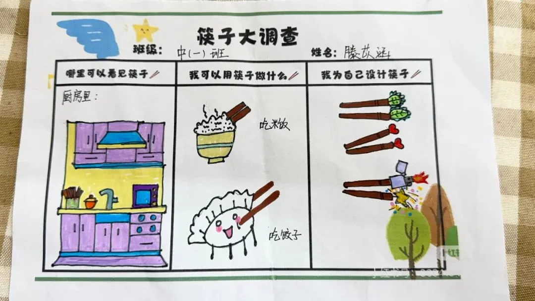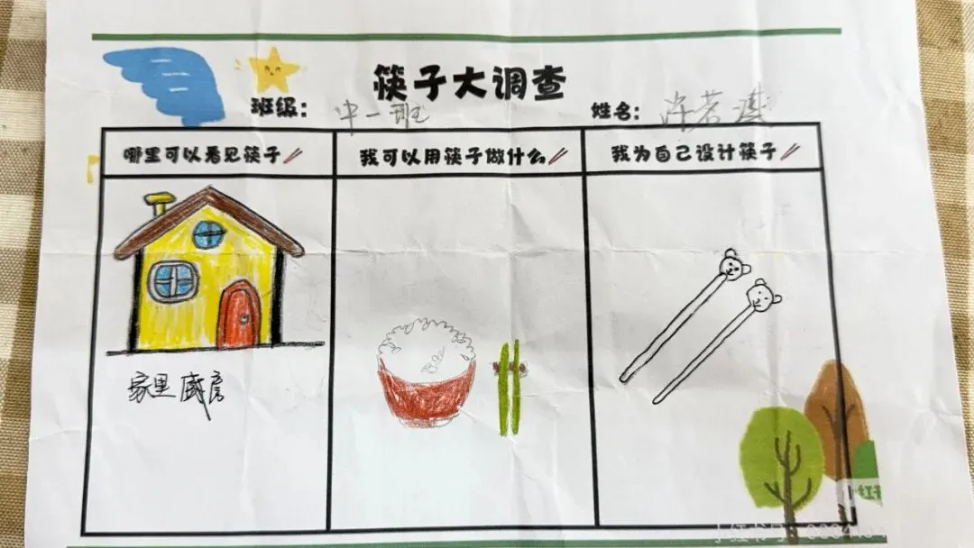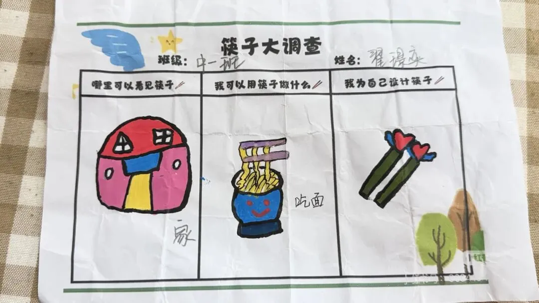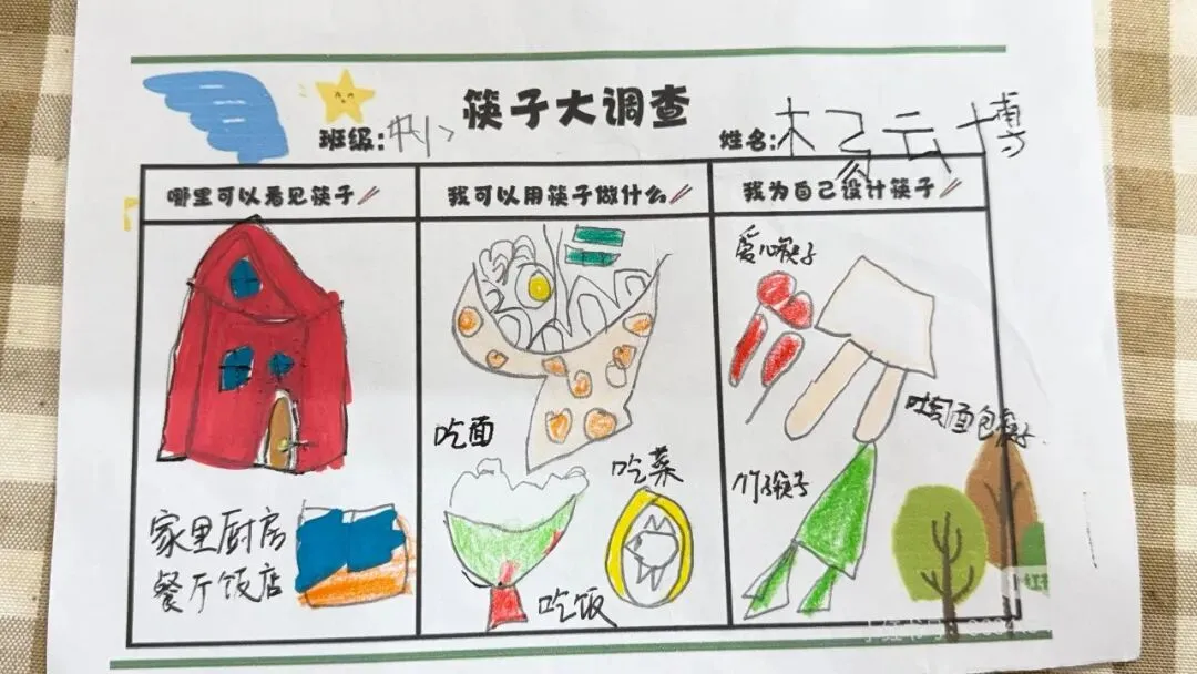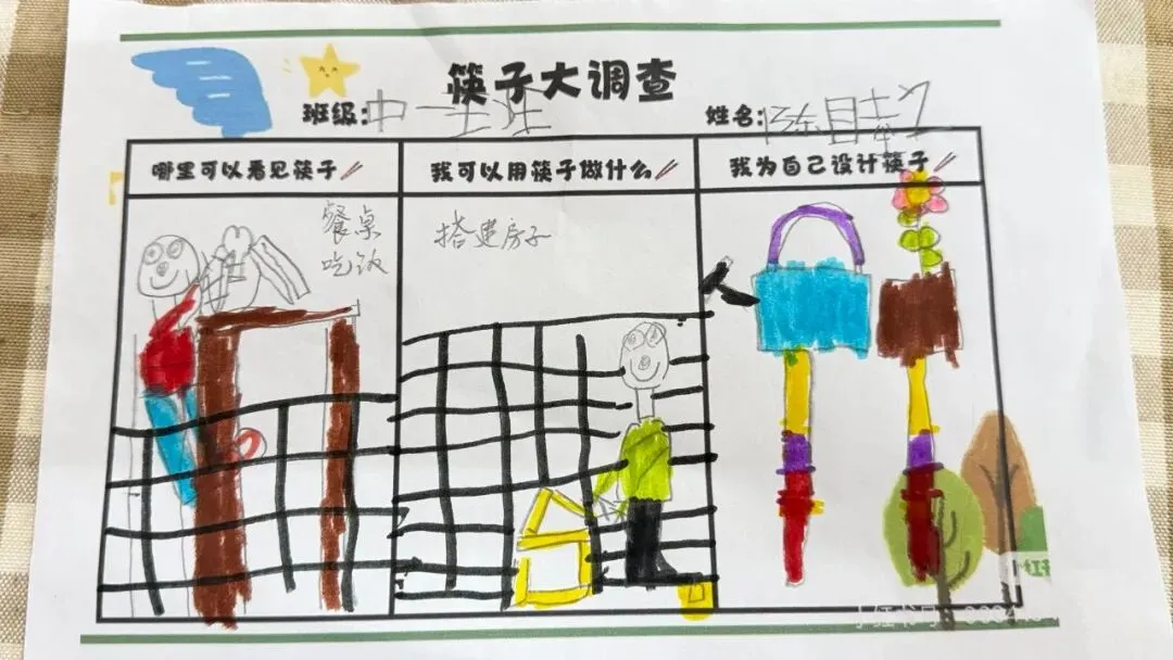 孩子们纷纷拿起画笔,在图纸上设计自己喜欢的图案,有的绘画可爱的小动物,有的涂满缤纷色彩,创意满满的作品不仅激发了表达欲,更让他们与筷子建立起独特的情感联系。