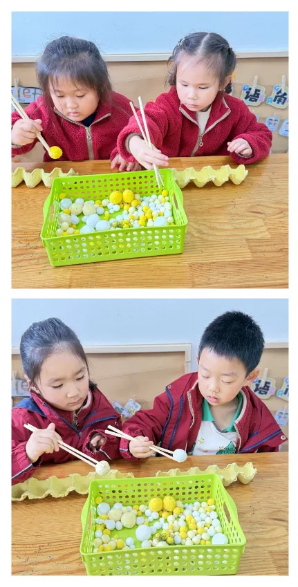 一双小筷子,承载着大大的成长。孩子们在“筷”乐夹夹的游戏里,耐心练习、反复尝试,从笨拙到熟练,从急躁到专注。每次成功的夹取,都是小手与大脑的默契配合。