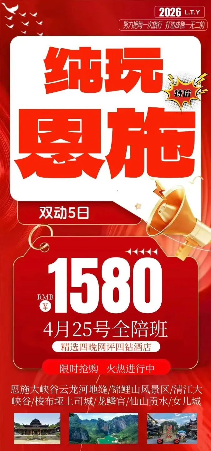 🚩恩施全景纯玩线,0️⃣购物、0️⃣套路,真品质