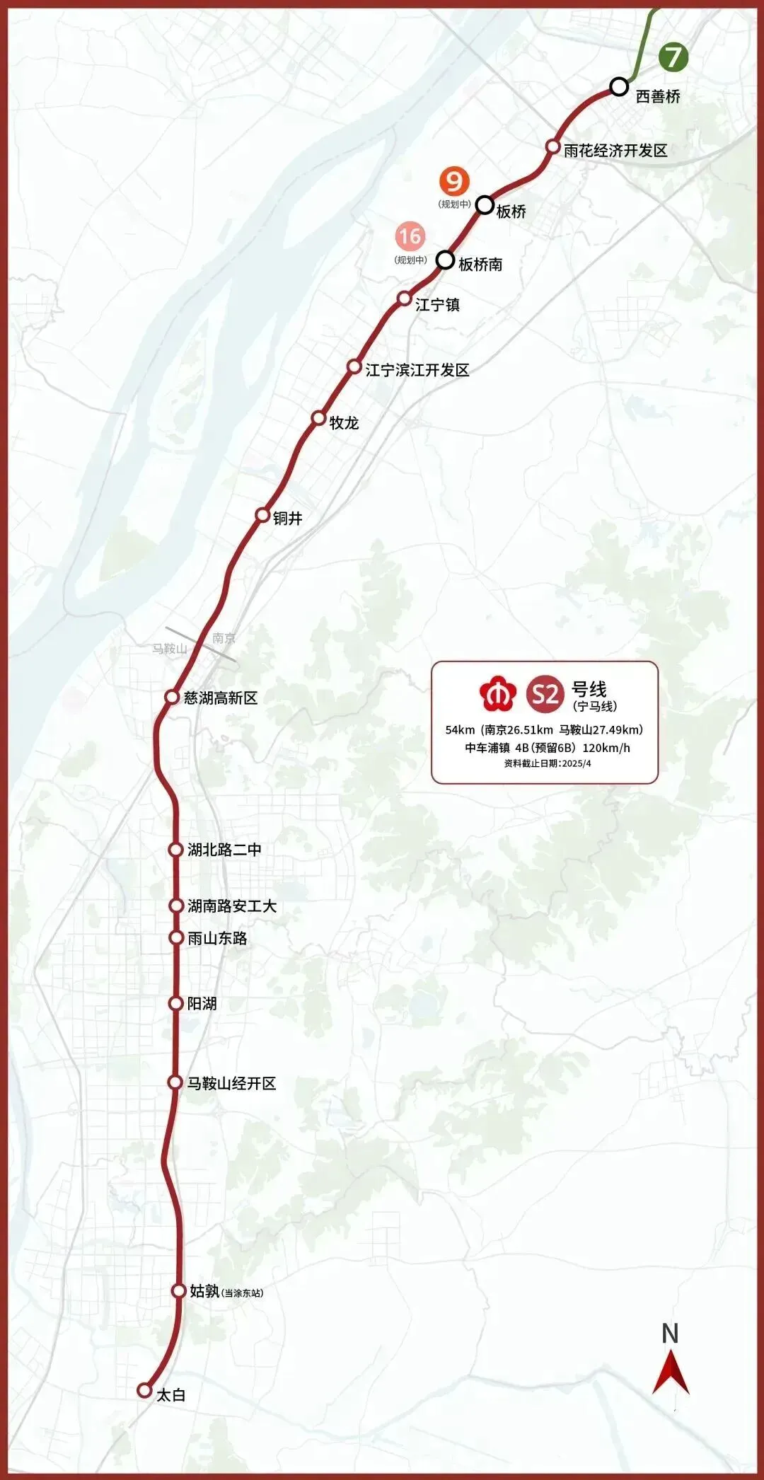 宁马城际全长54.23千米,其中南京段26.51千米,于2021年12月开工;马鞍山段27.49千米,于2021年3月正式开工。
