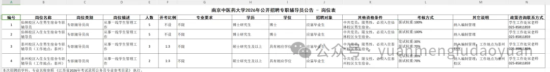 南京中医药大学人力资源处、学生工作处负责回答此次招聘政策、岗位咨询。