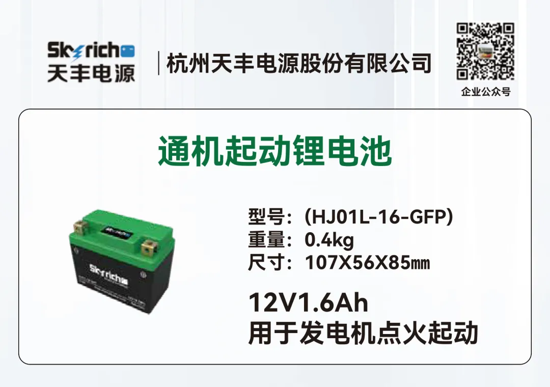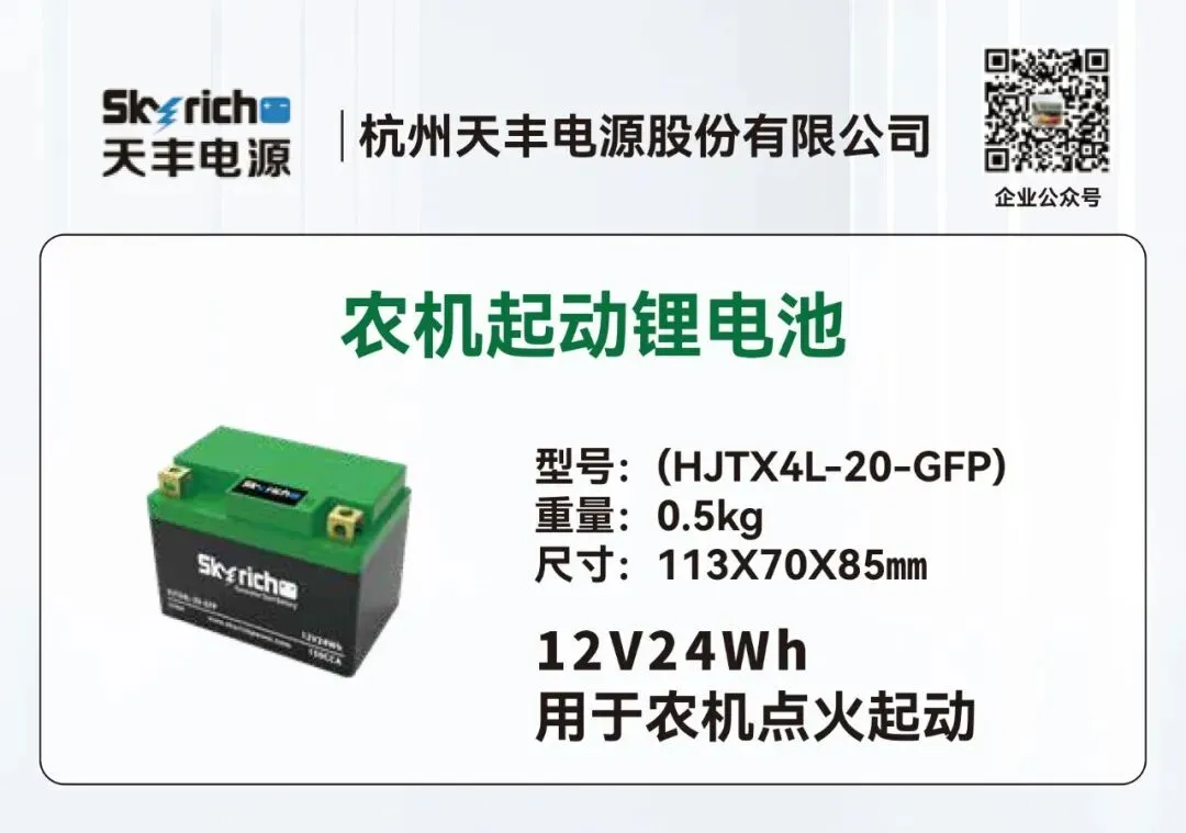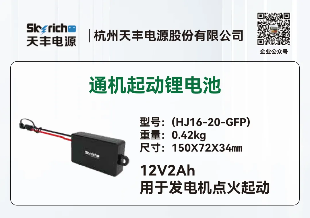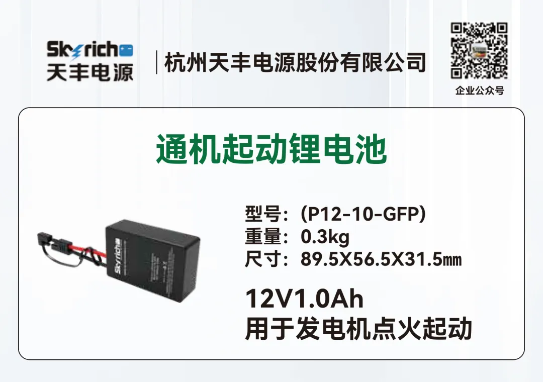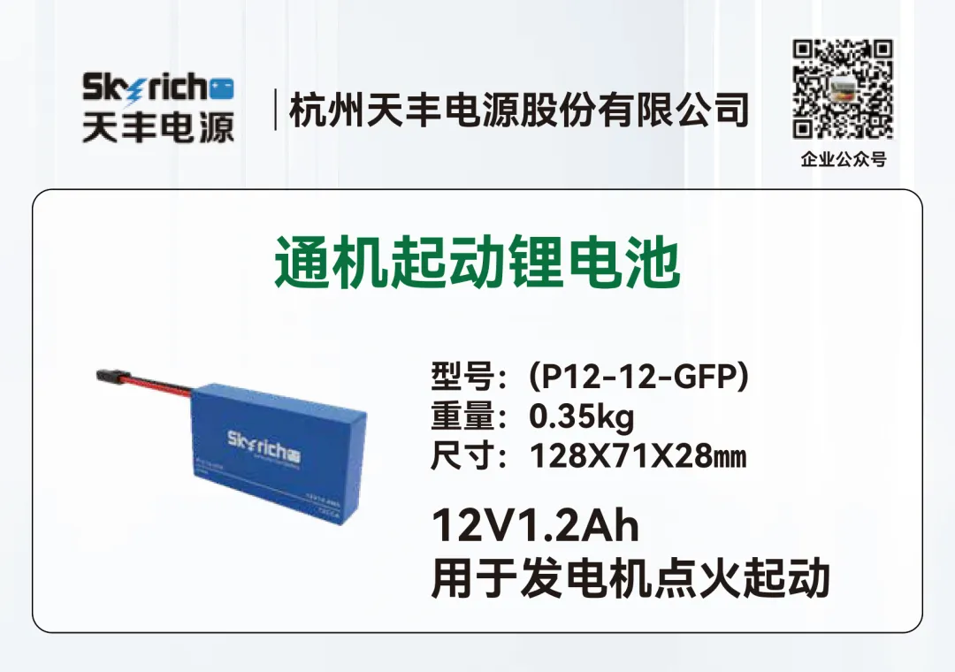 天丰电源深耕聚合物锂离子电池行业二十余年,作为国家重点领域高新技术企业、《通用小型汽油机启动用锂离子电池通用技术条件》团体标准第一起草人,一直致力于起动电池全领域、动力电池细分领域产品的研发与创新,自主研发的产品在低温启动及大电流放电方面具有明显优势,能在极寒条件下迅速启动并稳定运行,满足各种高负载需求,广泛应用于汽车、摩托车、通机、柴油发电机、农用机械起动等产品领域。其中汽车起动用锂电池已经成功用于福田、江淮、陕汽、大运等轻卡商用车。另外天丰电源的重卡起驻锂电池突破传统低温起动技术瓶颈,解决在寒冷的气候下会遇到的起动困难问题,给用户可靠、高效、耐极寒的动力源。