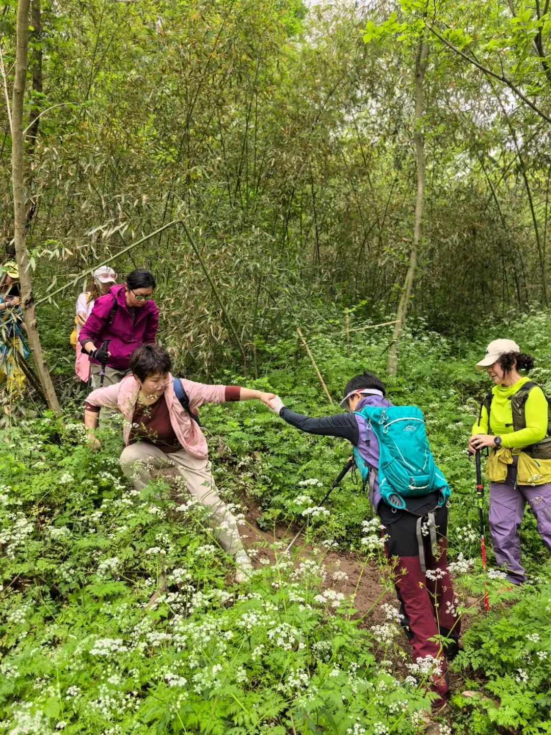 猫姐,爬山小队灵魂领军!给我们拍照,指导要点、角度,提醒爬山活动的队员注意安全,险要处并一一扶着过坎,谢谢猫姐!昨儿笑着调侃梅花小姐姐的话儿,笑得我们肚子疼。
