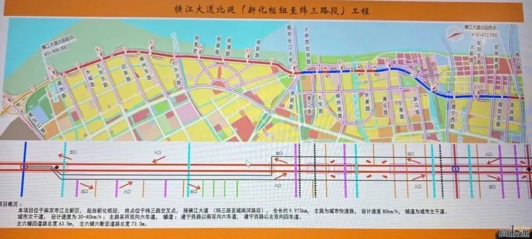 整个项目分2期打造,一期为长江大桥——纬三路段,二期为长江大桥——浦仪公路新化枢纽段。