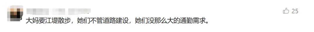除了这个原因,还有网友猜测业主之所以反对,可能是快速路阻碍了大妈们去江堤散步。