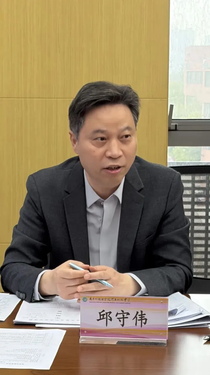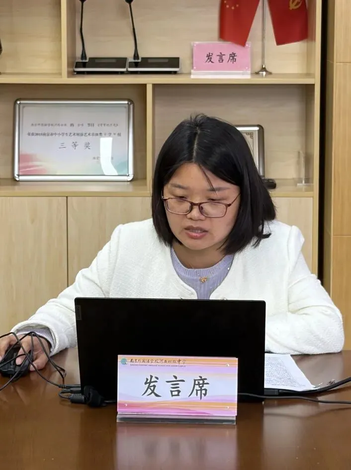 会议由南京外国语学校河西初级中学教研处主任邱守伟主持。他首先介绍了出席本次评估会的论证专家:建邺区教师发展中心叶屏屏老师、南京市陶行 知学校王新芳老师和南京外国语学校河西初级中学邱守伟老师。随后,朱璐副校长代表学校致欢迎辞,对专家组的到来表示热烈欢迎和衷心感谢,强调教育科研对学校发展的重要意义,并预祝各课题组顺利通过中期评估。