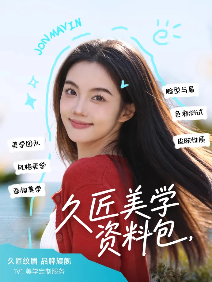 在久匠,“四维定制系统”是每一位纹绣师的必修课。融合面相学、三庭五眼比例、眉形五点坐标与色彩美学,将抽象的审美感知,转化为可测量、可推敲的设计参数,让美的构建既有艺术直觉的引领,也有科学逻辑的支撑,真正贴合每一张独一无二的脸庞与气质。