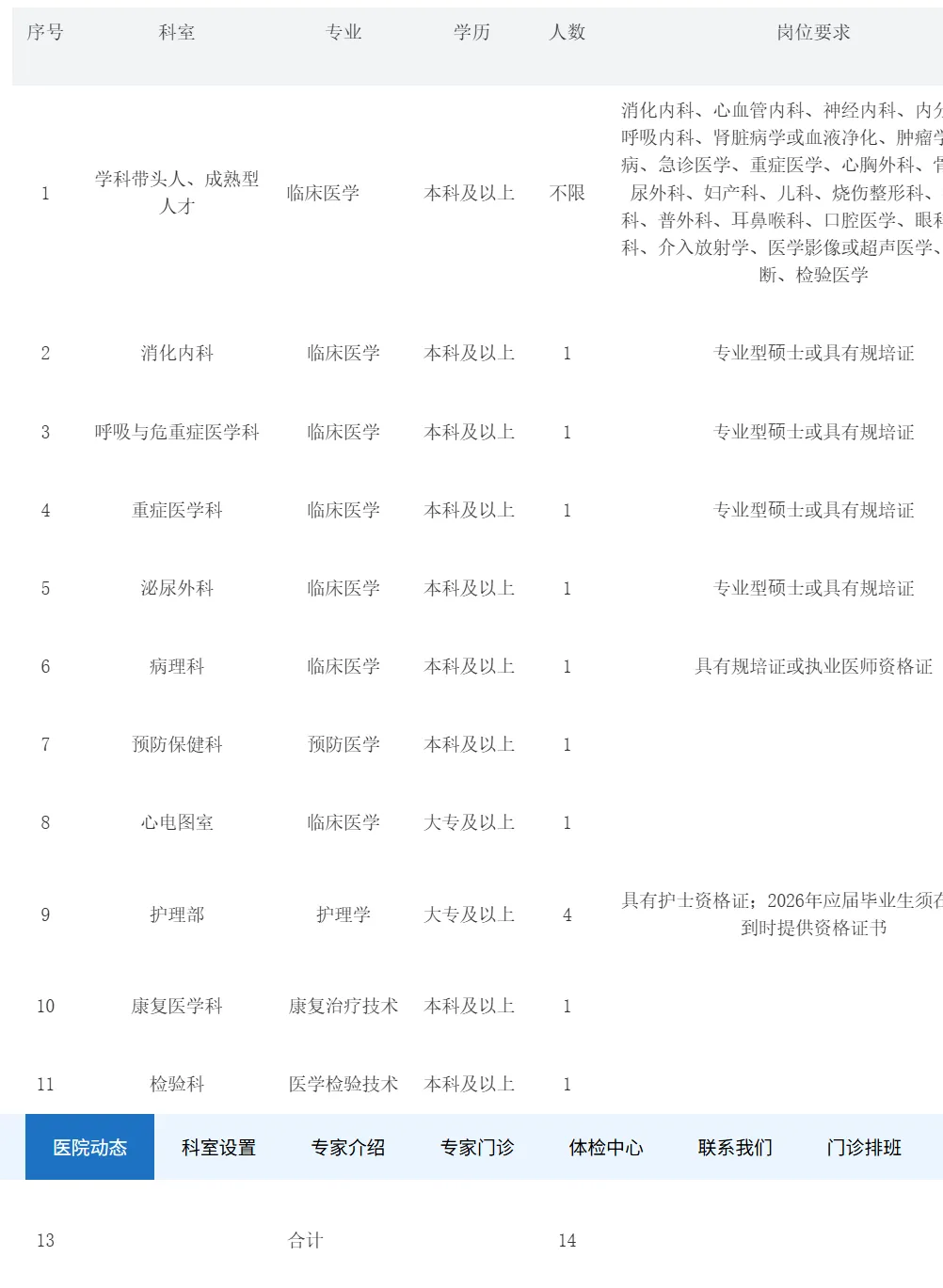 2.护理岗位要求:年龄不超过28周岁(1998年1月1日后出生);护理专业全日制大专及以上学历(不含“3+2”“3+3”高职毕业生);具有护士资格,2026年应届毕业生须在录用报到时提供资格证书。