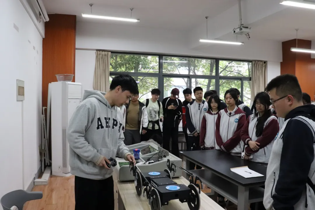 当天,师生们还在遥测院志愿者带领下分组参观南信大校园,走进工业机器人实验室、“见山园”等场所,沉浸式感受大学氛围与工科魅力。