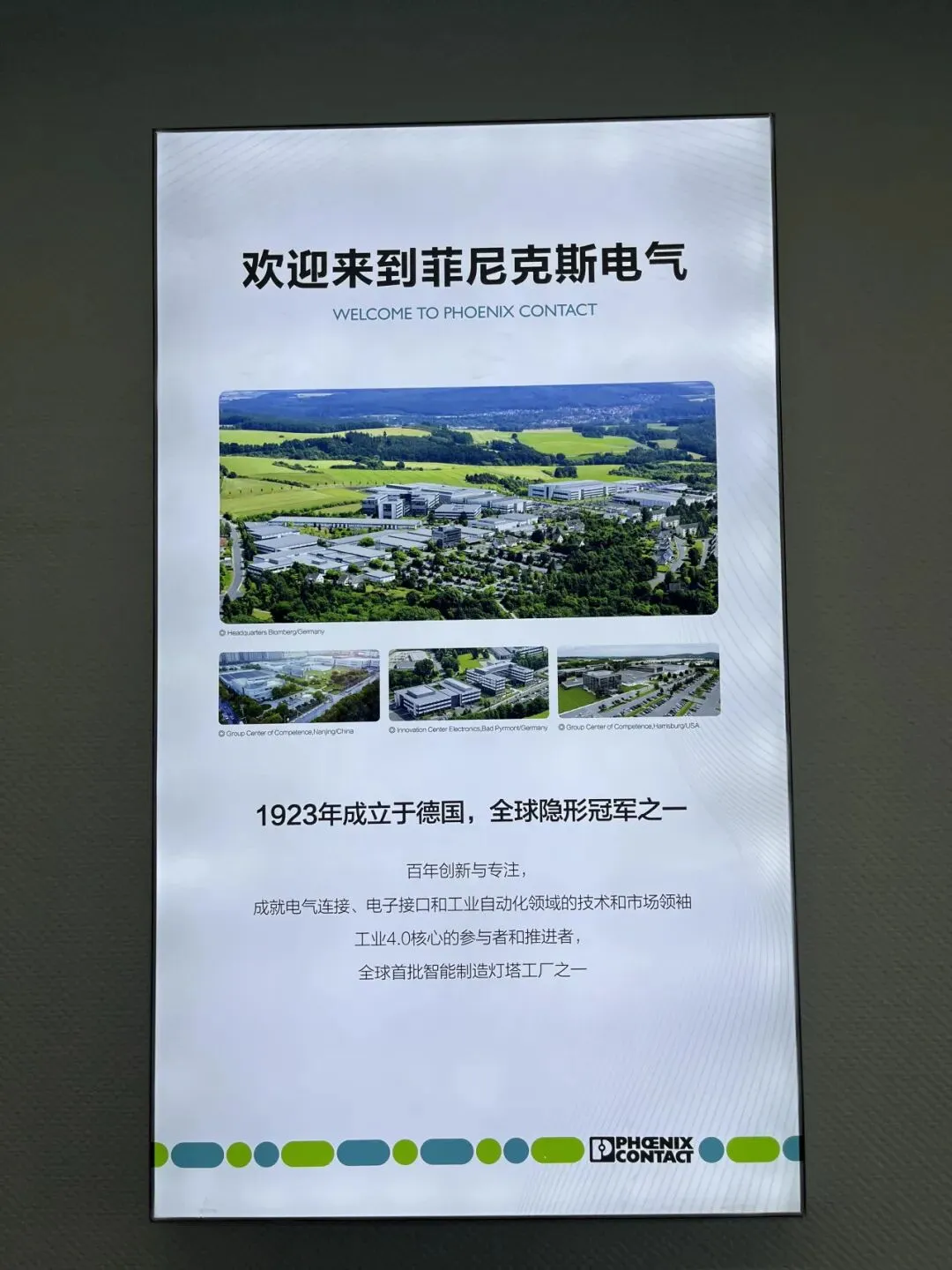 菲尼克斯电气中国是德国菲尼克斯集团的在华全资子公司。1923年始创于德国的菲尼克斯集团,是全球电气连接、电子接口及工业自动化领域领军企业,也是德国“工业4.0” 核心合作伙伴。该公司1993年进入中国,总部落户南京,是集团海外最大研发生产基地、全球三大竞争力中心之一,更获评世界经济论坛首批 “灯塔工厂”,建有全价值链智能示范工厂,代表着中德智能制造合作的标杆水平。