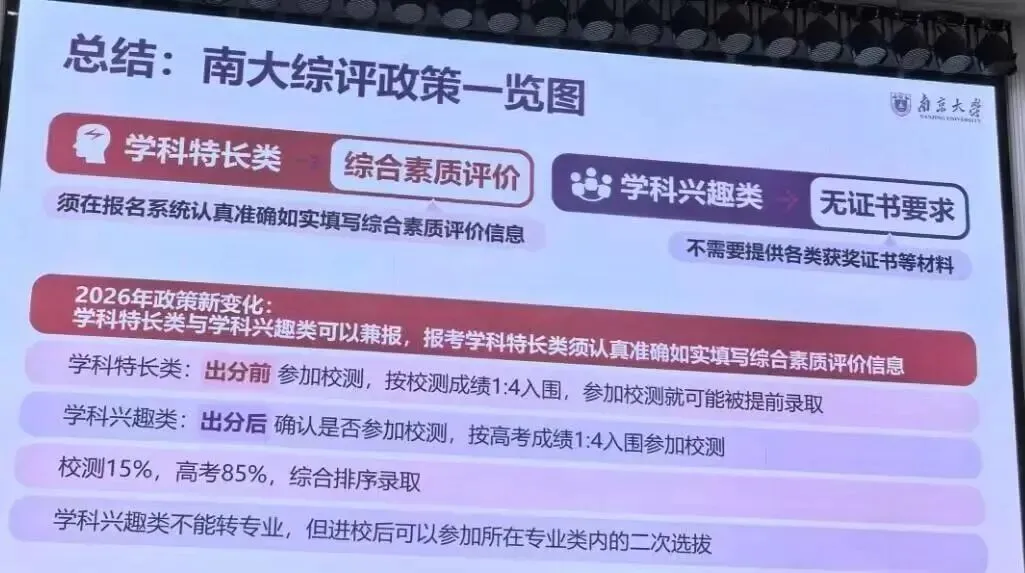 南京大学2026年综评招生最新信息流出,有一些变化,一起来看看: