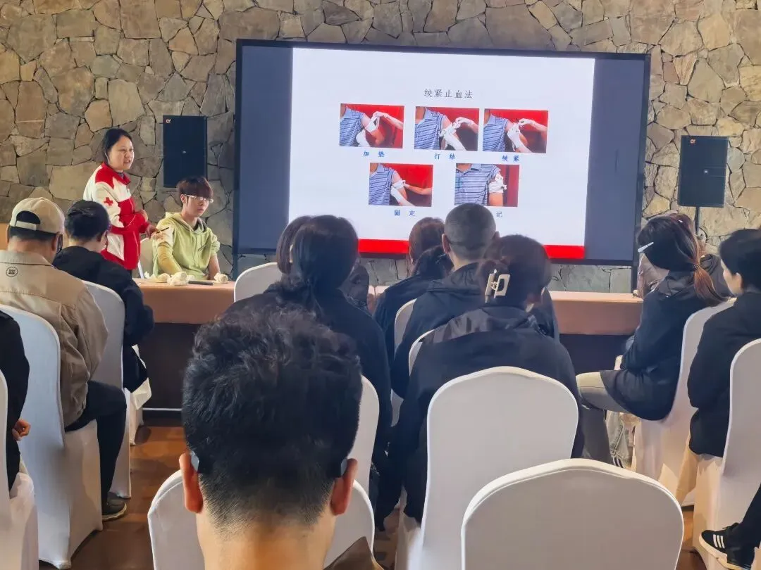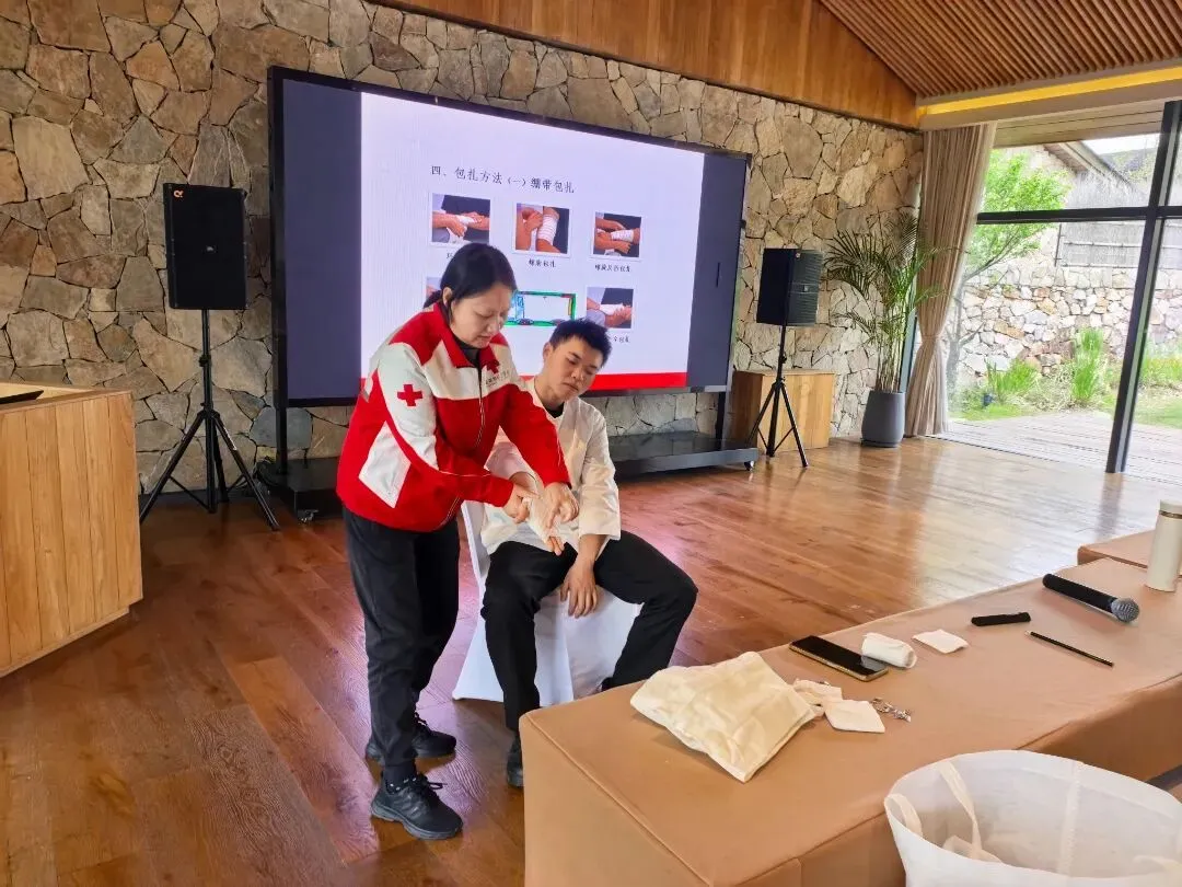 为提升度假村从业人员应急救护能力,筑牢公共场所安全防线,4月14日,溧水区红十字会组织专业讲师团队,走进裸心岭度假村开展初级救护员专题培训,度假村50名一线员工积极参与学习。