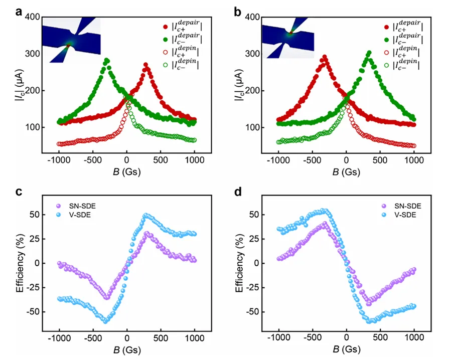 高效率:SN‑SDE效率最高达42%,V‑SDE效率达60%,优于多数现有栅压调控超导二极管。