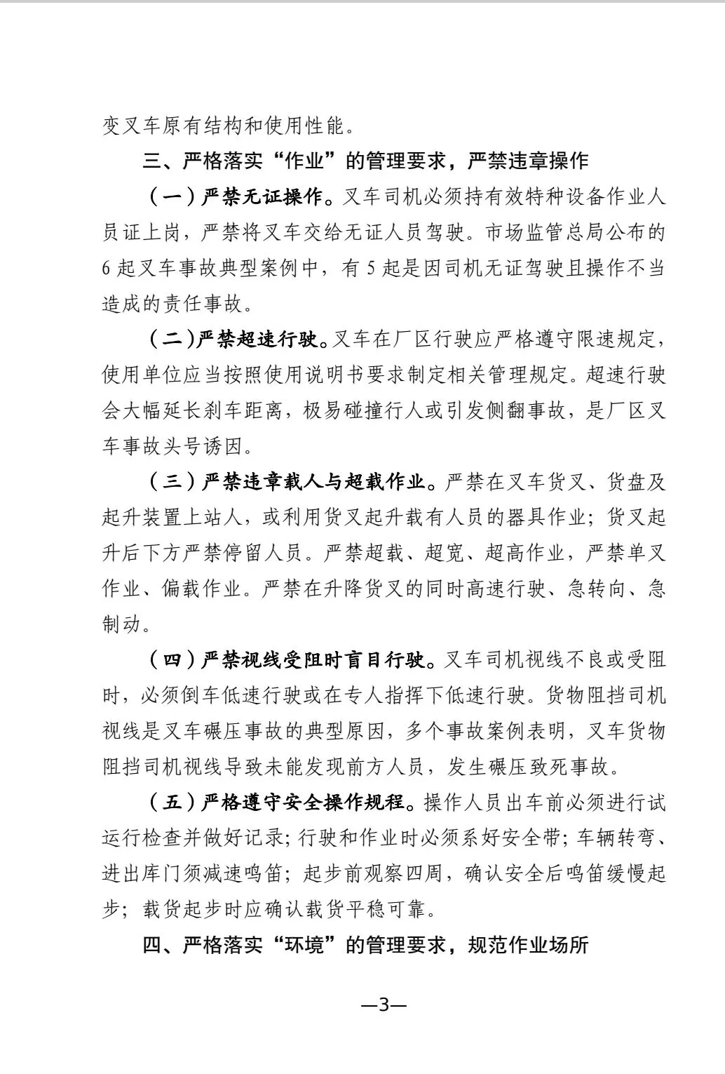 南京市市场监督管理局发布关于加强叉车安全管理的风险提示