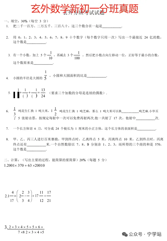 考试内容以 小学五、六年级重难点 + 少量初中衔接知识 为主;成绩 直接决定分班结果,是初中学习环境的起点,务必全力准备!