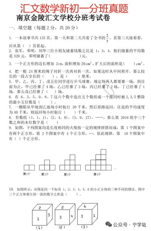 树人、汇文、二十九中等校分班试题汇编