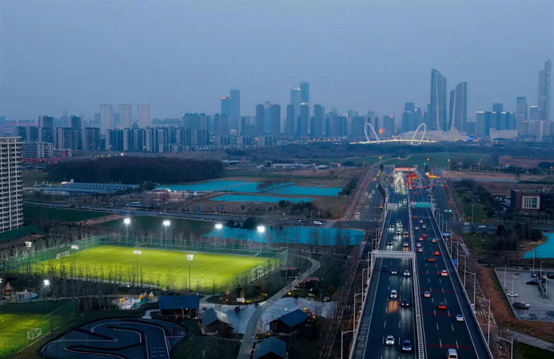 从江北驶上五桥,五桥之下,江心洲藏着一处宝藏打卡地——F₄ PARK体育公园。