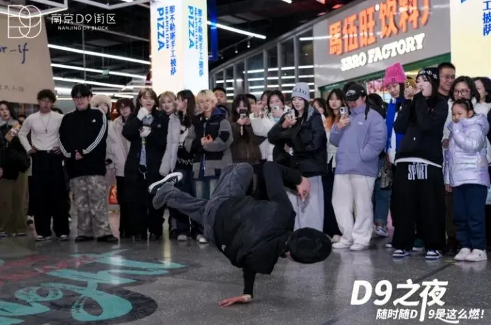 长江路上,由旧厂区改造而成的南京D9街区,于2026年元旦前后推出了“D9之夜”系列活动,以潮流随舞为核心,打破传统舞台边界,在开放空间设置互动场景,青年群体可随时随地参与舞蹈展示,实现“无处不舞台、随时可狂欢”。