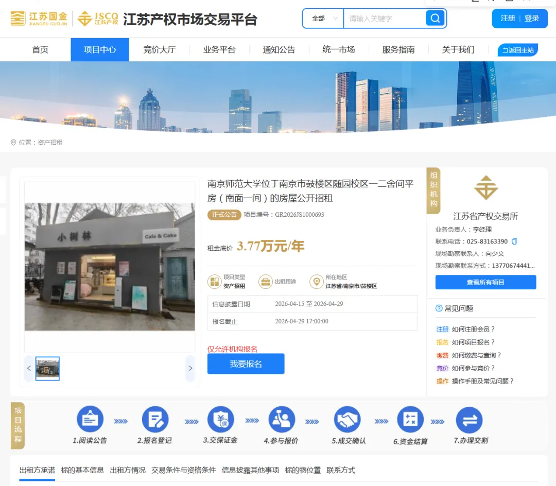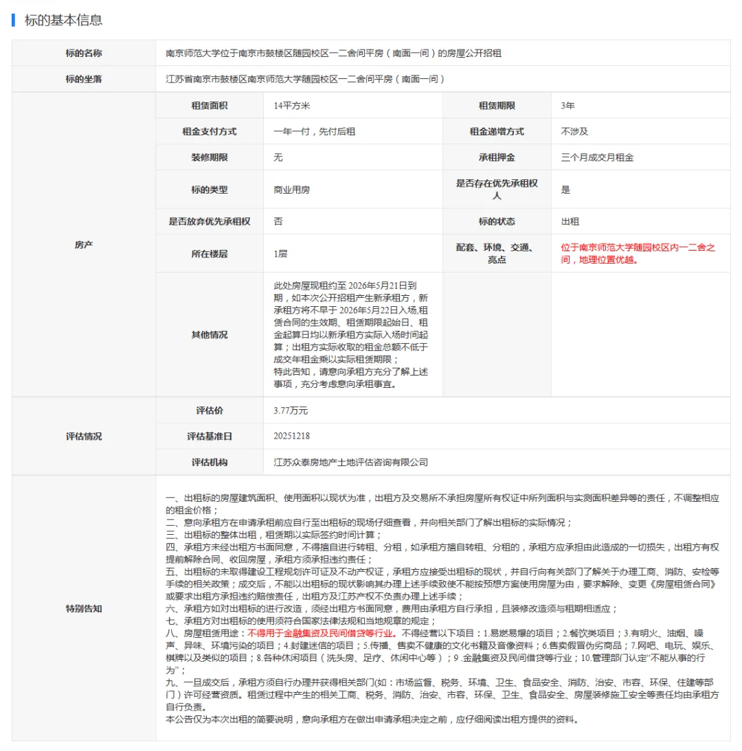 >南京师范大学位于南京市鼓楼区随园校区一二舍间平房(南面一间)的房屋公开招租