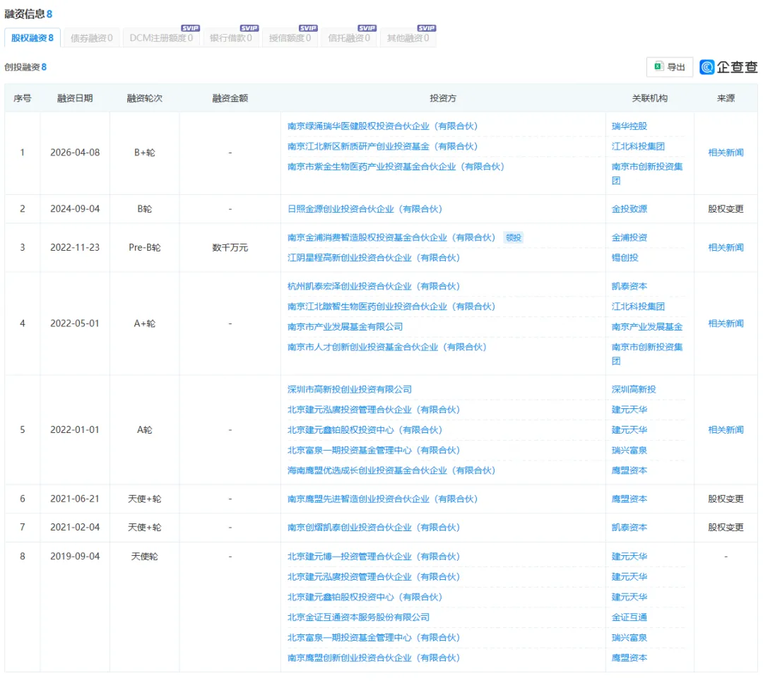 2026年4月15日,南京圣德医疗科技有限公司完成B+轮融资。