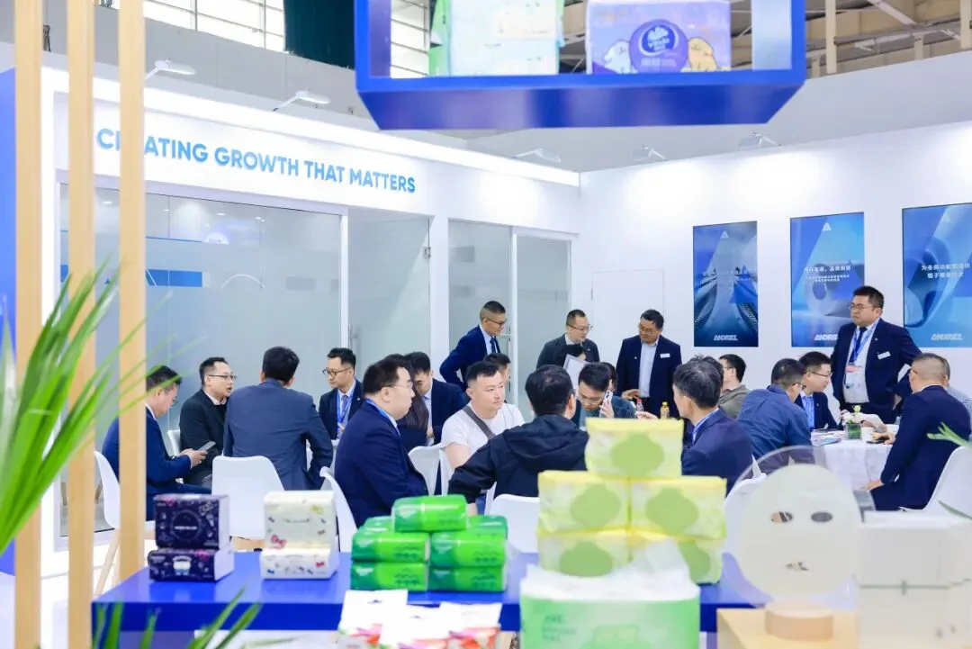 来自APP、维达、恒安、联盛、龙璟等行业典型品牌的成品集中亮相,同时,展示区也呈现了赛得利、金三发、希纺新材等非织造领域客户的样布及终端制品,涵盖湿巾、干巾及面膜基布等应用。通过成品与材料的对照展示,让观众得以直观感受——从纤维加工到终端产品,安德里茨如何以“MORE”系统能力支持行业升级。
