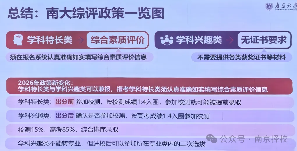 南京大学2026年综合评价招生最新信息流出,为帮助考生和家长第一时间吃透政策,江苏升学通第一时间对最新信息进行深度拆解。话不多说,一起来看看这5点核心变化与关键应对策略!