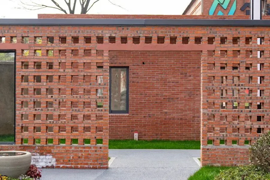 红砖灰墙映着参天梧桐,斑驳肌理藏着工业记忆。走进园区,十余栋红砖老厂房依旧矗立,每一处厂房轮廓都得以留存,工业时代的骨架依旧清晰可见。