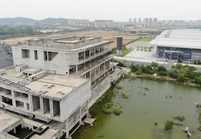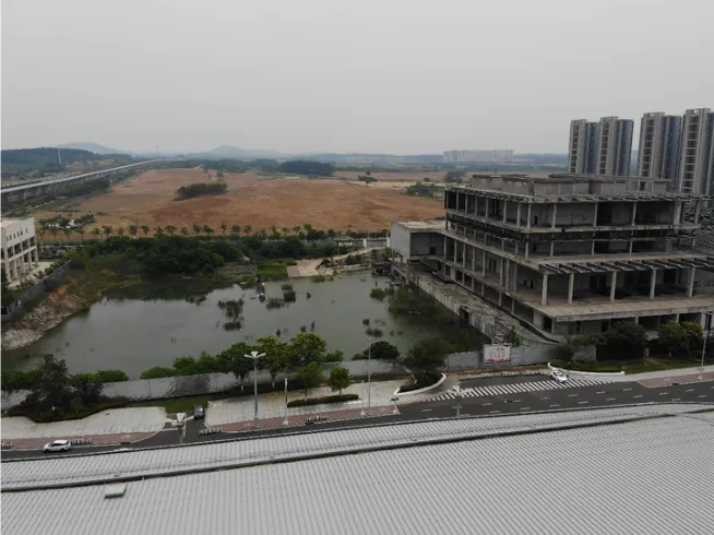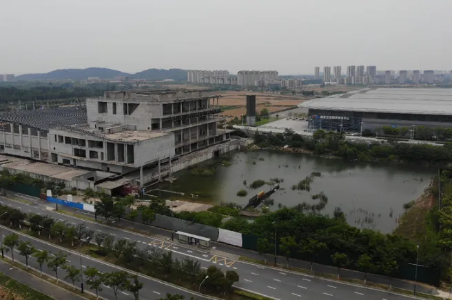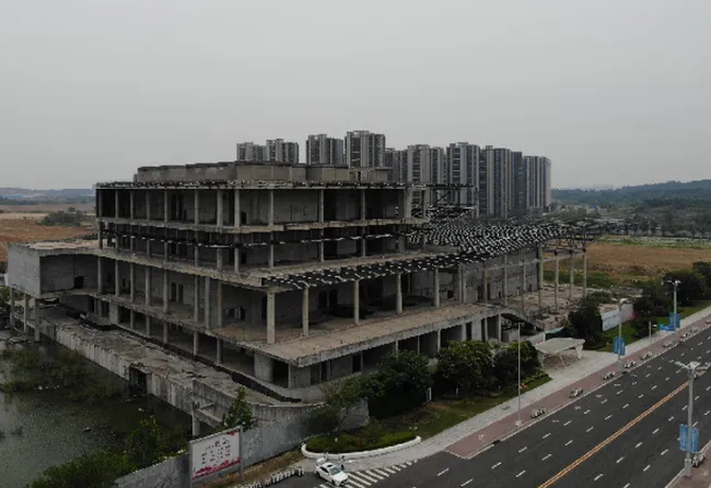 资料显示,会议中心工程于2020年4月正式开工,现已停工多年、长期闲置。目前项目基坑支护、桩基、主体结构、砌体二次结构及墙体粉刷均已完工,尚未完成竣工验收,处于停滞状态。