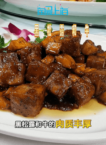 和牛以肉质鲜嫩细腻著称,软糯易嚼老少咸宜,配以法式黑松露酱调味,和牛的油润与松露的馥郁芬芳交织,又透着中式锅气的,层层爆香。