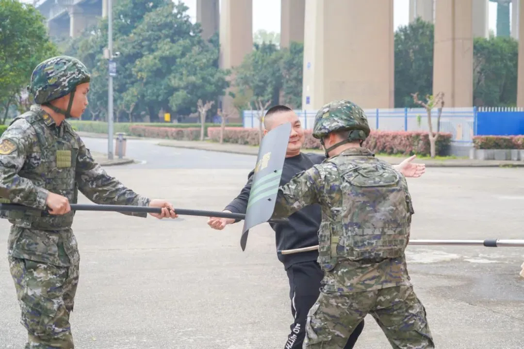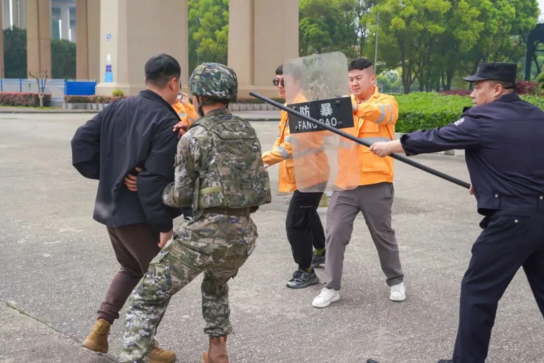 模拟不法分子闯入公园等公共场所,威胁职工游客安全等场景。安保力量第一时间启动响应,利用防暴盾、钢叉等防爆器械将“不法分子”制服。