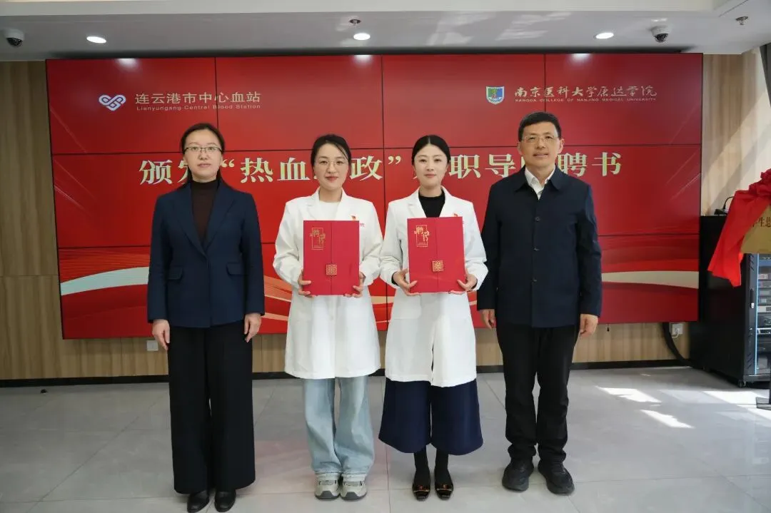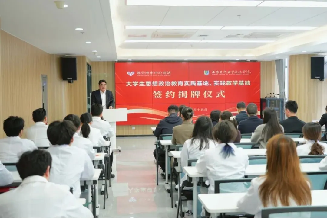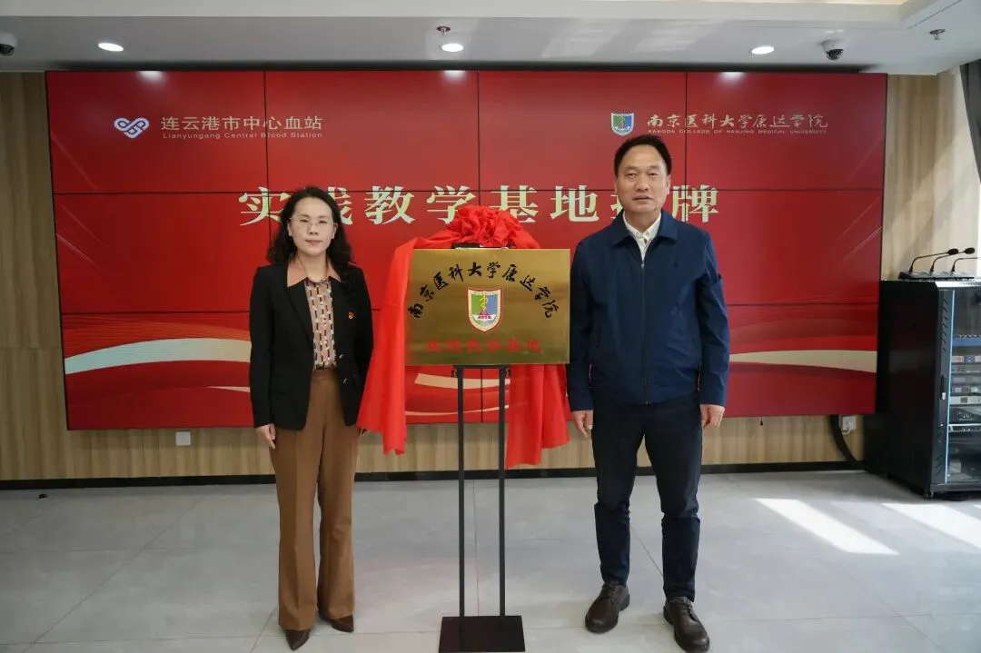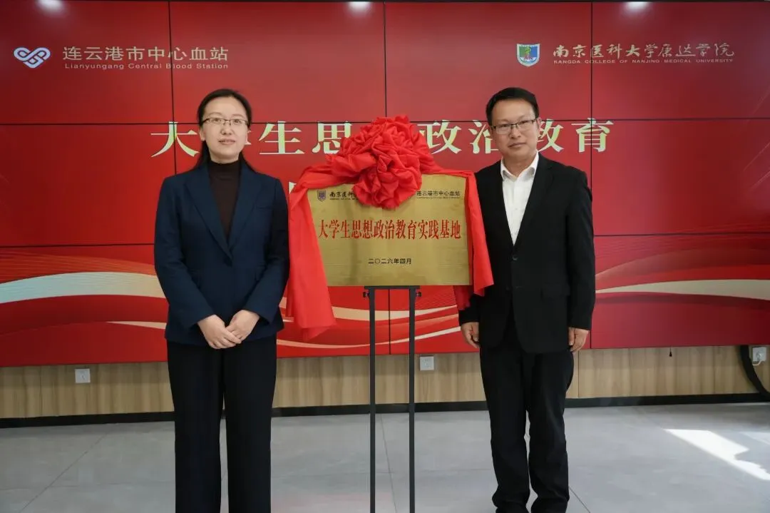 仪式由市中心血站党委委员、副站长王文军主持。江荣同志在致辞中表示,南京医科大学康达学院作为扎根港城、服务地方的重要医学高校,在人才培养、学科建设等方面具有重要支撑作用。当前血站正处于高质量发展关键阶段,此次基地共建既是践行正确政绩观、聚焦实干实效的务实举措,也是血站补齐人才短板、强化技术支撑、拓宽思政育人渠道的现实需要,对推动无偿献血事业与医学教育协同发展意义深远。