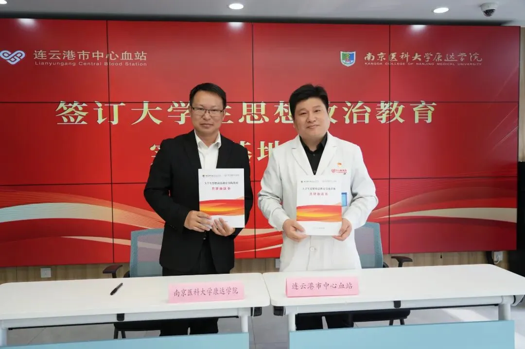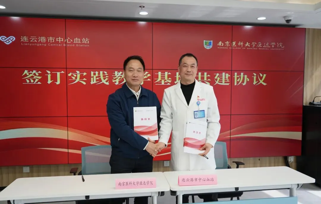 为深化校地合作,推动医学实践育人与无偿献血事业高质量发展,4月15日,连云港市中心血站与南京医科大学康达学院举办大学生思想政治教育实践基地、实践教学基地签约揭牌仪式。南京医科大学康达学院院长张鸿来,市卫生健康委员会党委委员、副主任张晨,康达学院党委副书记、副院长王磊,副院长张怀平,市中心血站党委书记、站长江荣等领导出席活动,血站中层干部、业务骨干及学院师生代表共同参加。