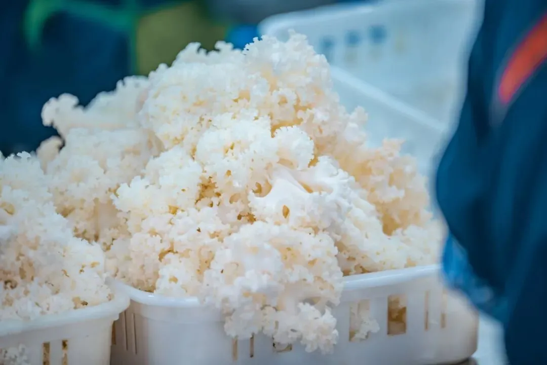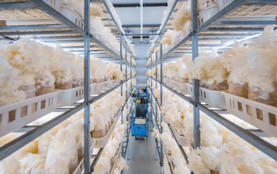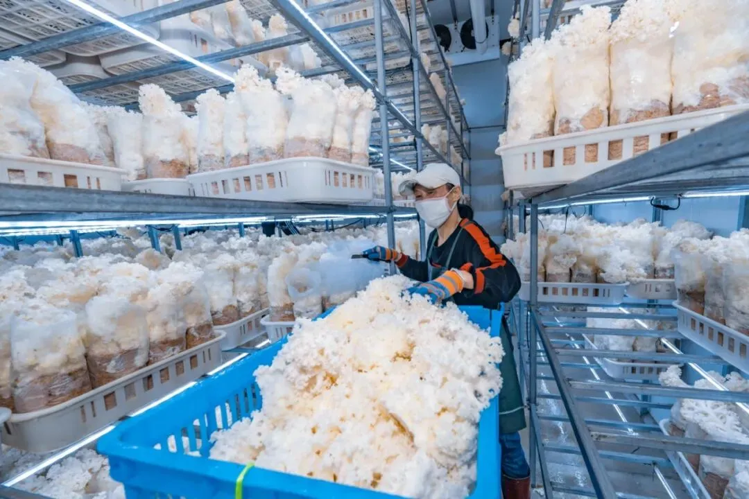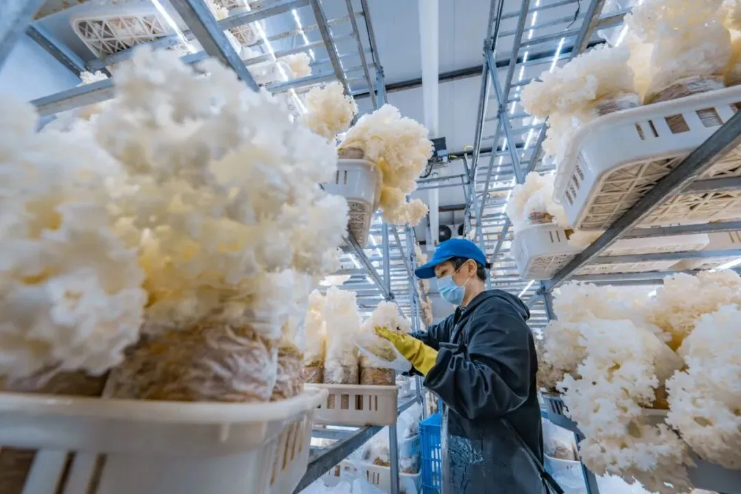 乳白色的绣球菌从培养基中缓缓舒展,宛如饱满圆润的白色绣球,整齐码放在多层培育架上。谁能想到,这样量产的绣球菌,曾经只能生长在海拔2000米左右的高山针叶林地带,野生资源稀缺,难以走进寻常百姓家。