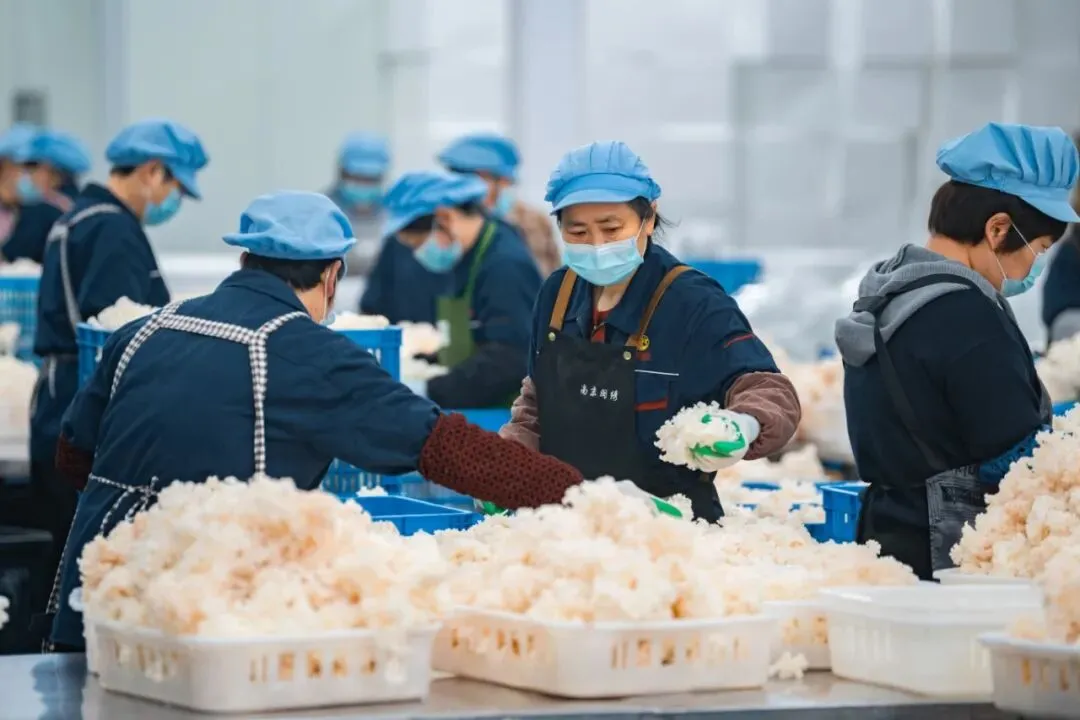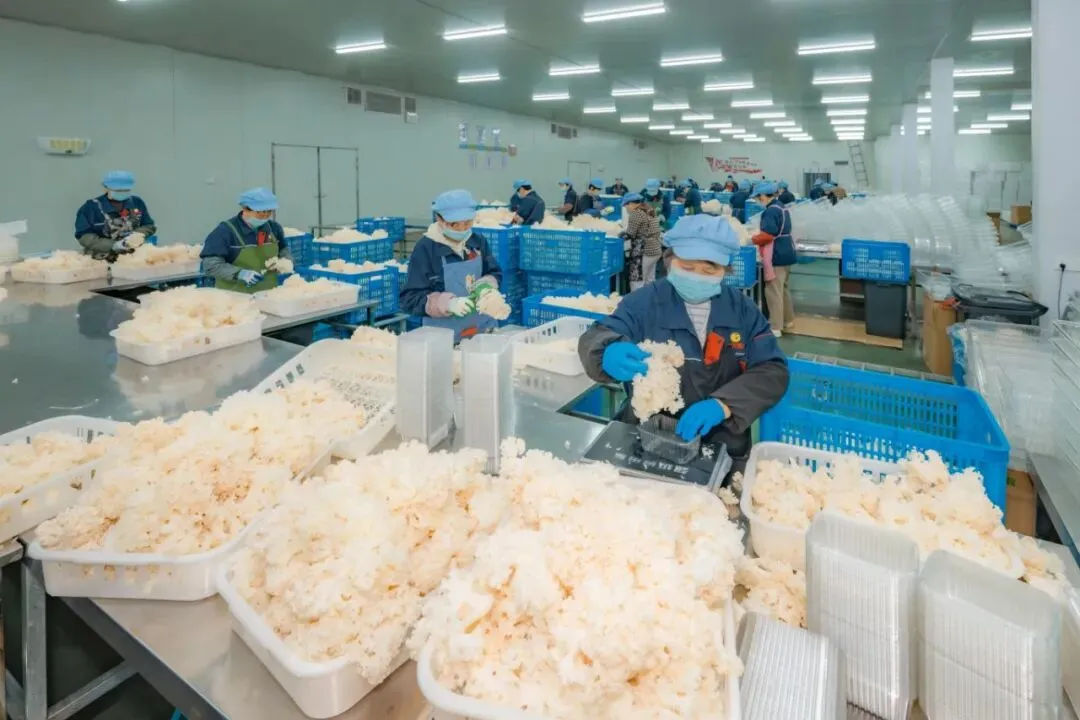 公司技术负责人黄润介绍,得益于高淳优质的水土和空气,加上企业的菌种和工艺,这里出产的绣球菌朵形更圆、颜色更白、肉质更厚实、口感更脆嫩,已成为行业品质标杆。
