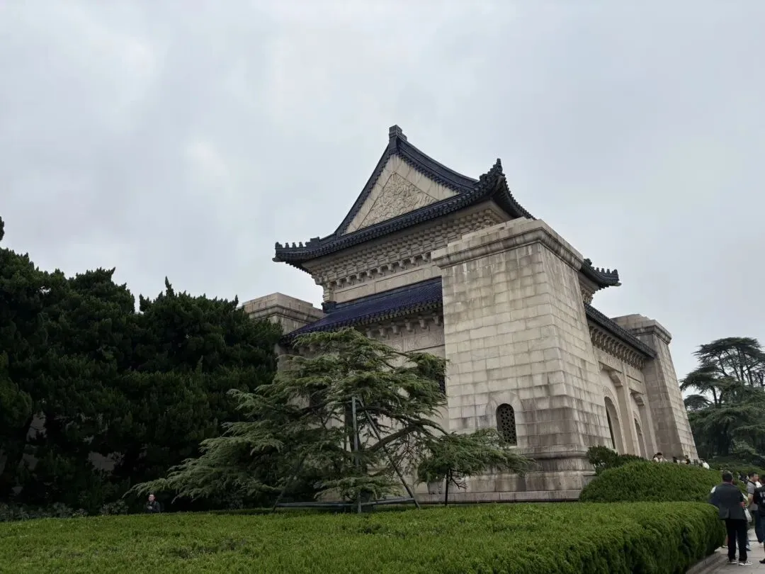第四日谒中山陵。去之前便听说,中山陵的台阶设计极巧妙——从下往上看,只见台阶不见平台,寓意革命道路步步艰辛,唯有向上;待登上顶端回望,又只见平台不见台阶,象征着伟人视野开阔,回看来路已是坦途。我们亲自走了一遭,才知此言不虚。站在博爱坊下仰望,青色的琉璃瓦在松柏间若隐若现,一道笔直的墓道将视线引向远方。拾级而上,三百九十二级台阶果然如传说中的那样:每一级都在眼前,平台完全被遮挡,仿佛永远走不到头。腿脚渐渐发酸时,我不禁想——孙中山先生当年奔走革命,三十余年屡败屡战,他眼中的前路,是否也是这样只见艰辛、不见平川?可等我们终于登上祭堂,转身回望的那一瞬,所有人都安静了。来路消失了——不,不是消失,是那些台阶的平台连成一片宽阔的平地,仿佛一路走来从未有过坎坷。远处的紫金山峦起伏,南京城尽收眼底。那一刻我忽然懂了:这不是视觉的魔术,这是建筑师的隐喻——艰辛是攀登时的感受,坦途是抵达后的回望。而只有真正走上去的人,才能同时拥有这两种视角。