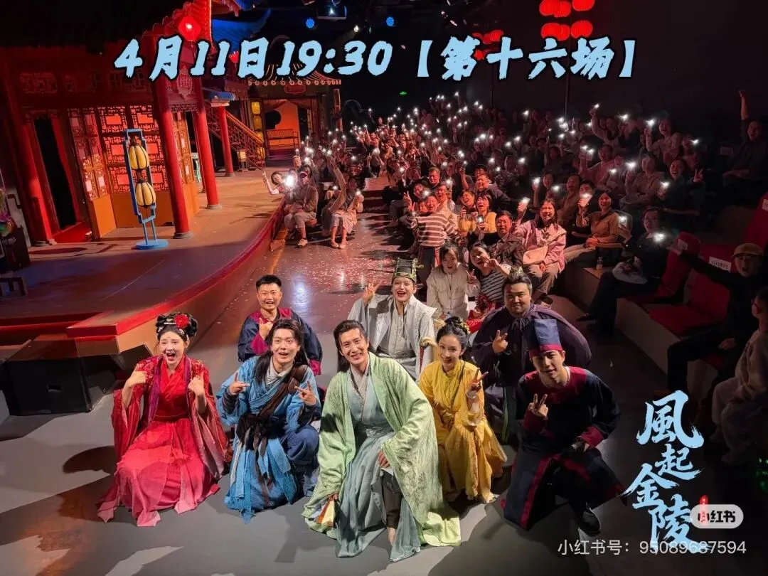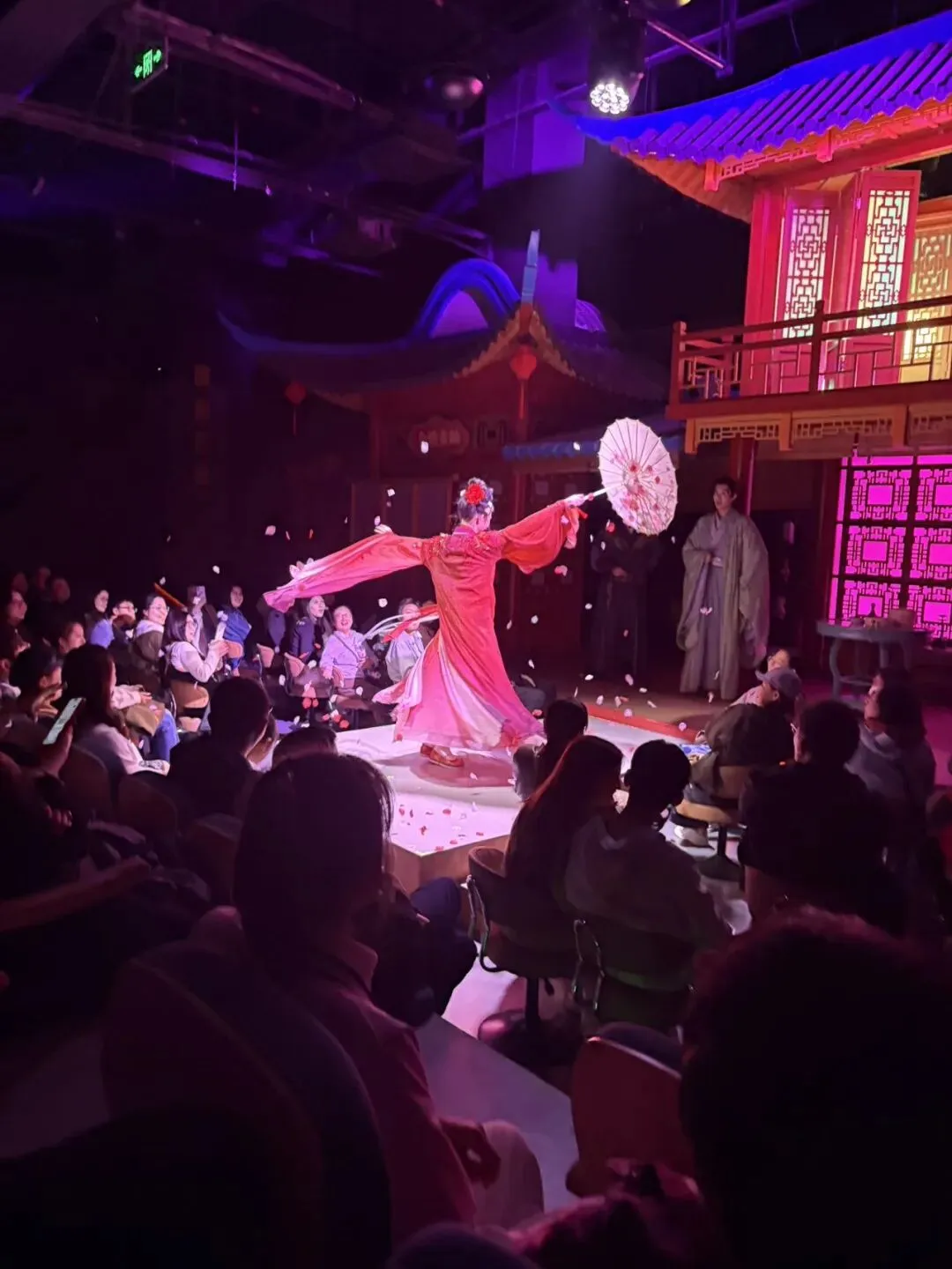 晚餐为了看剧方便选在金陵style的状元及第,饭后步行去隔壁剧院观看沉浸式国风喜剧《风起金陵》。演员就在身边穿梭,台词偶尔逗得满场大笑。南京话剧院的演员班底演技不错,颜值也很高,只是喜剧效果还是稍微欠缺了一些。